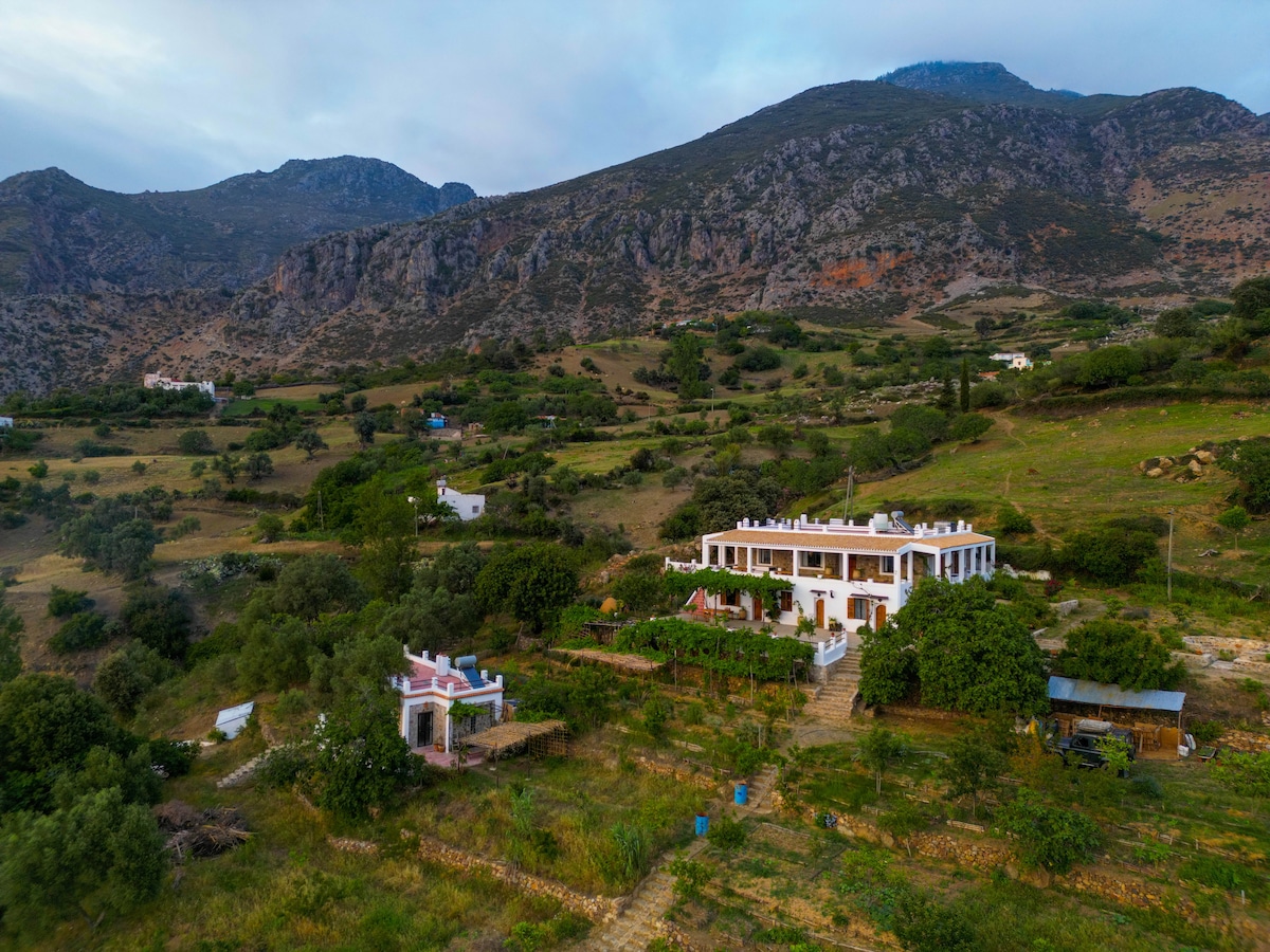 Escape to Natural Sommet, an organic farm near Chefchaouen. Perfect for singles, couples, and families seeking a peaceful retreat in nature. Accommodation: Cozy rooms made of soil and stones, offering natural coolness in summer with garden views. Enjoy daily organic meals; lunch is included for longer stays. Activities: relax by our small plastic pool or explore hiking trails with us like Akchour.. Book your peaceful getaway at Natural Sommet and experience organic farm life at its best.