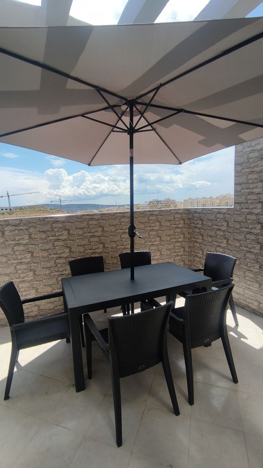 Welcome to our charming 3-bedroom apartment nestled in the vibrant heart of Tangier's hyper center. All necessary amenities are available: Air-conditioning, Smart Tv, Netflix, fiber-optic internet connection, coffee machine, towels, shower amenities, etc Located on the last floor of the building with elevator access, you are just a few stairs away to access the incredible rooftop and admire breathtaking views of Tangier, Spain, the straits of Gibraltar and the mountains of Chefchaouen.