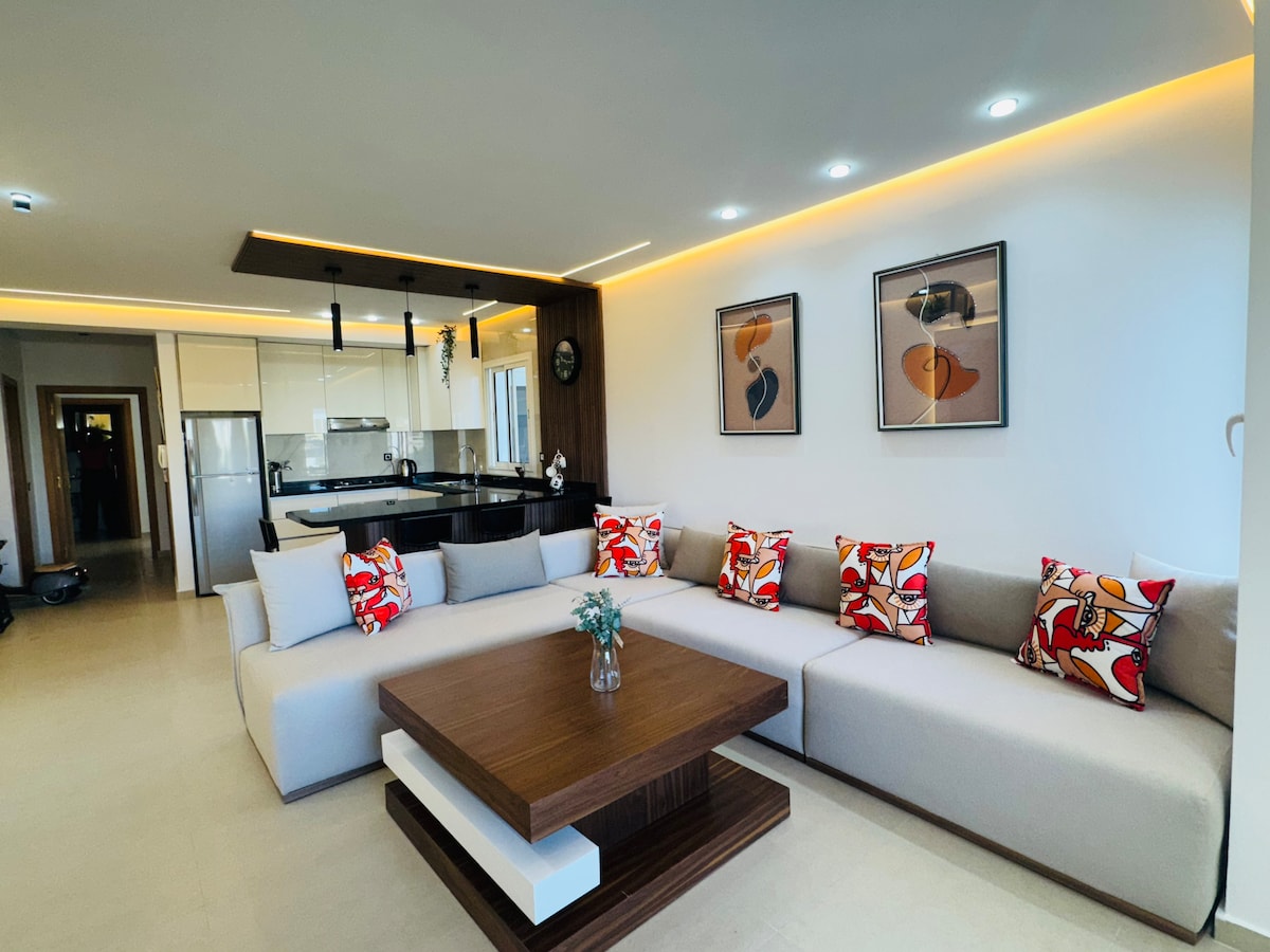 Experience a true beachfront, heart of downtown escape in this spacious 3-bedroom sea-view apt with a private garage and an unbeatable location on Tangier’s Marina Bay Corniche. What you'll love: • Direct access to Corniche promenades. • 135 m² of pure comfort • Fast Wi-Fi & Smart TV • Private garage (rare in this area!) • Fully equipped kitchen • Easy access to taxis & public transport The apt offers the ultimate Tangier lifestyle, perfect for families and friends seeking to discover the city.