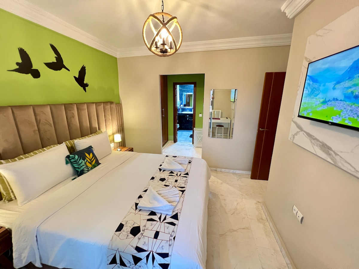Charming peaceful retreat in the heart of Tangier! Original decor blending industrial and nature. Comfortable bedroom, direct access to a secret green patio. Modern bathroom, practical dining area, living room with Chesterfield sofa. Ideally located downtown for easy exploration of Tangier. Your unforgettable stay starts here! Tanger centre ! Charme & originalité. Chambre confort, patio secret verdoyant. SdB moderne, coin repas. Salon Chesterfield. Idéal découverte ville. Votre havre de paix.