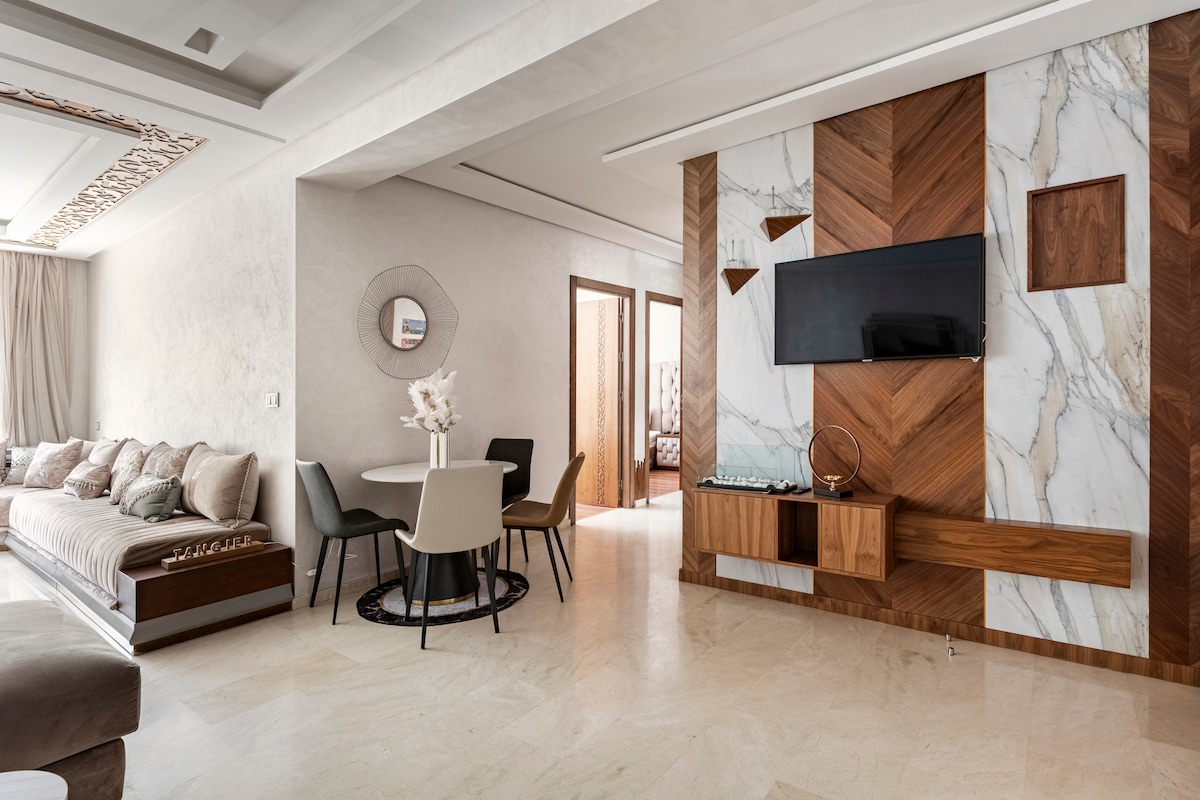 Venez vivre une expérience unique dans cet appartement de luxe, où le confort moderne et traditionnel se marie avec le charme de Tanger. Situé en plein cœur de la ville, cet espace élégant vous offre une atmosphère raffinée, idéale pour explorer les merveilles de Tanger. Vous êtes assuré d'un séjour mémorable. L'appartement à quelques pas des principales attractions, restaurants et boutiques locales, il constitue l’endroit parfait pour se détendre après une journée bien remplie.