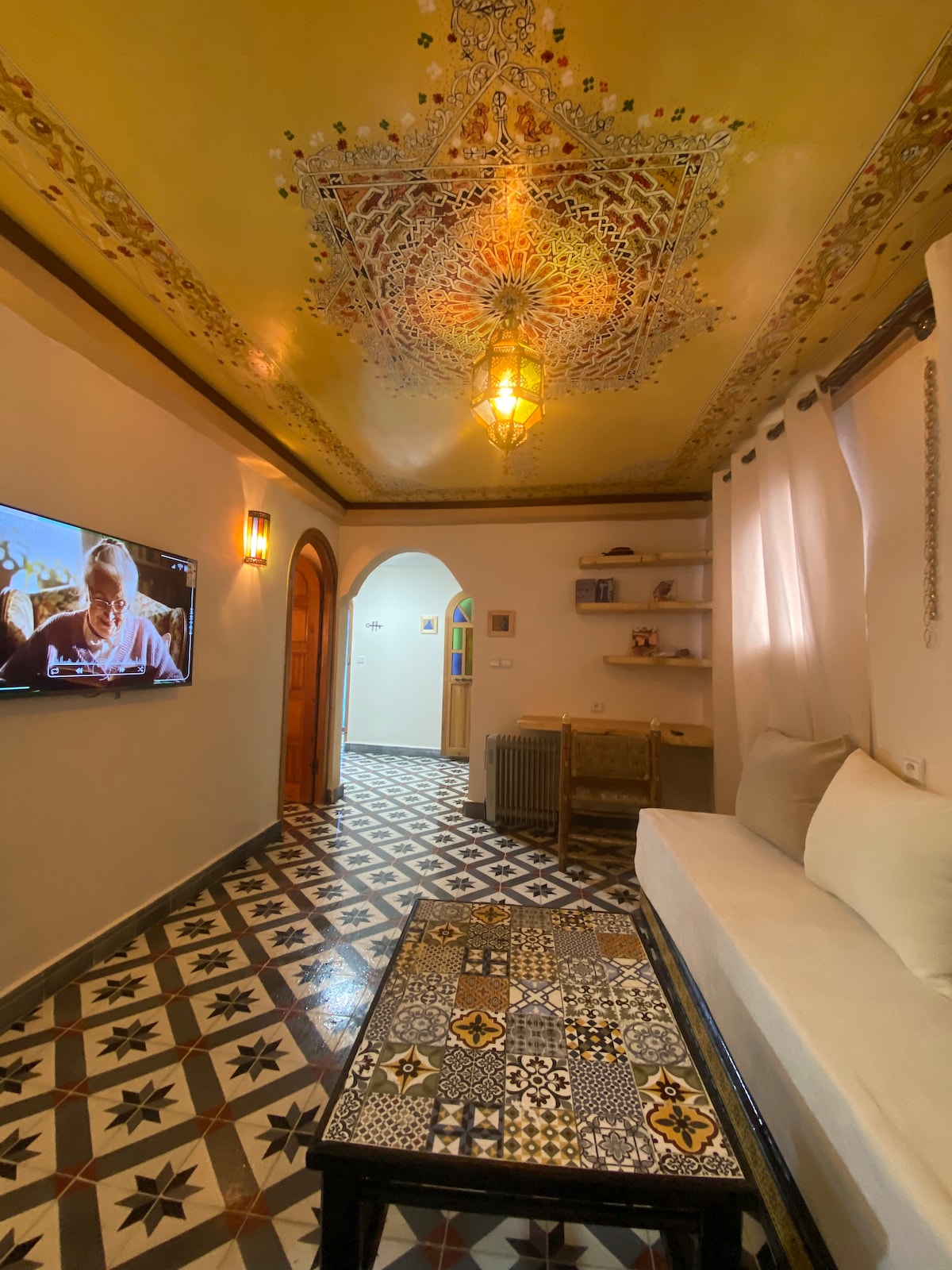 Artisan home in Hay Andalous (old medina). A cosy home in 400 year old historical building with private entrance, spacious living room with panoramic view of Chefchaouen. Access to private roof for 360° view of the town and the mountains. Easily accessible with car/taxi since the house is located next to one of the old city gates (Bab Mahrouk) with a public parking space. Lots of love put into the details with hand-painted ceiling, hand-made zellij and traditional blue walls (Chefchaouen-style).