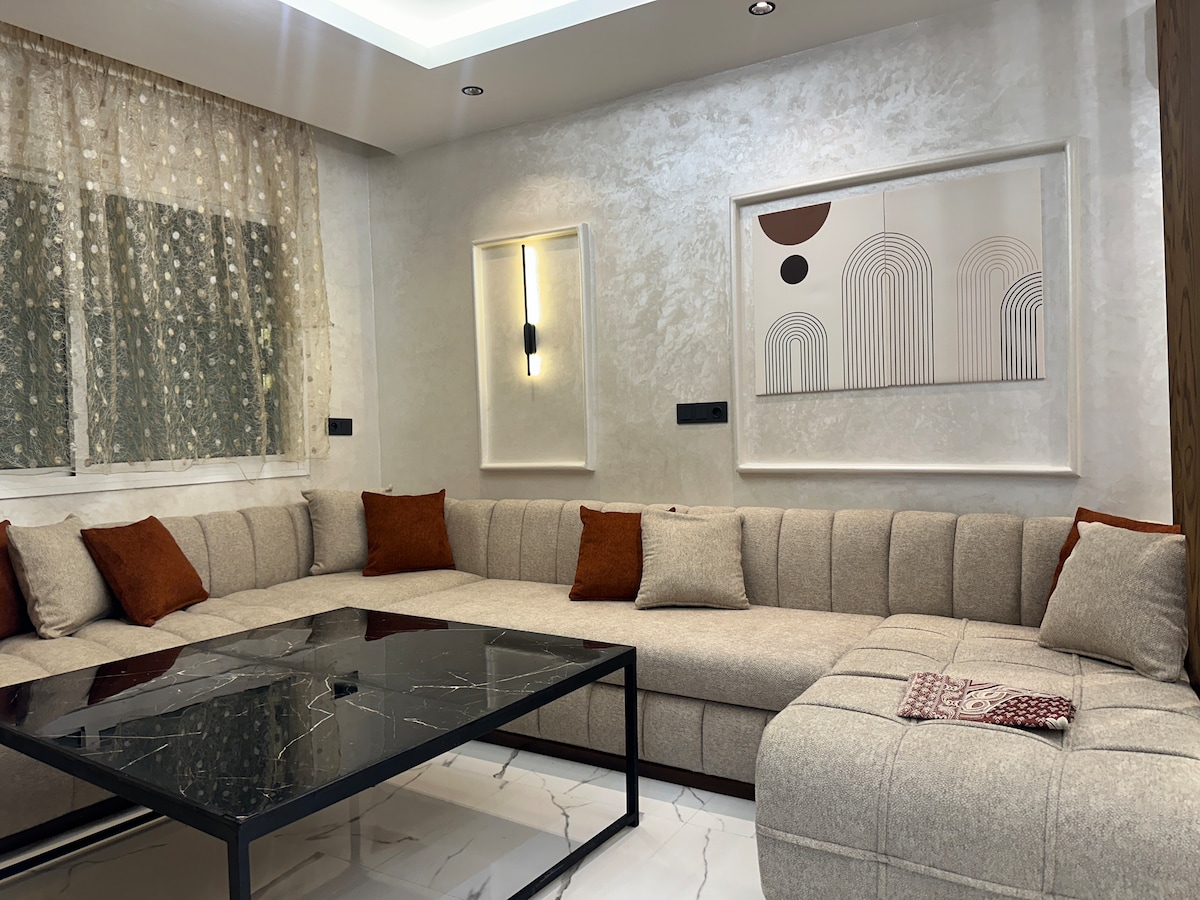 Located in the heart of Tangier, this apartment combines urban chic with coastal tranquility. Each carefully decorated room invites relaxation. The modern interior, featuring an American kitchen and an Italian shower, is designed for your comfort. Enjoy high-tech amenities such as centralized air conditioning, fiber optic Wi-Fi, Smart TV, and Netflix. Just steps away from the beach and the TGV station, City & Sea is a luxurious oasis.
