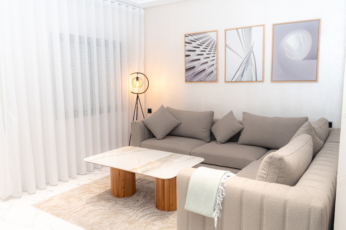 Welcome to our brand new two-bedroom apartment located in a prime area of Tangiers. This upscale property is situated in one of the most sought-after areas in the city with 24-H concierge & is only a 10 min walk from the Train Station, City Centre Mall, Ibn Battuta Mall and beaches. It offers both convenience and luxury at your doorstep. Private parking available. The apartment boasts: fibre optic WiFi, an option for chauffeur and a Moroccan breakfast prepared by our governess (additional cost)