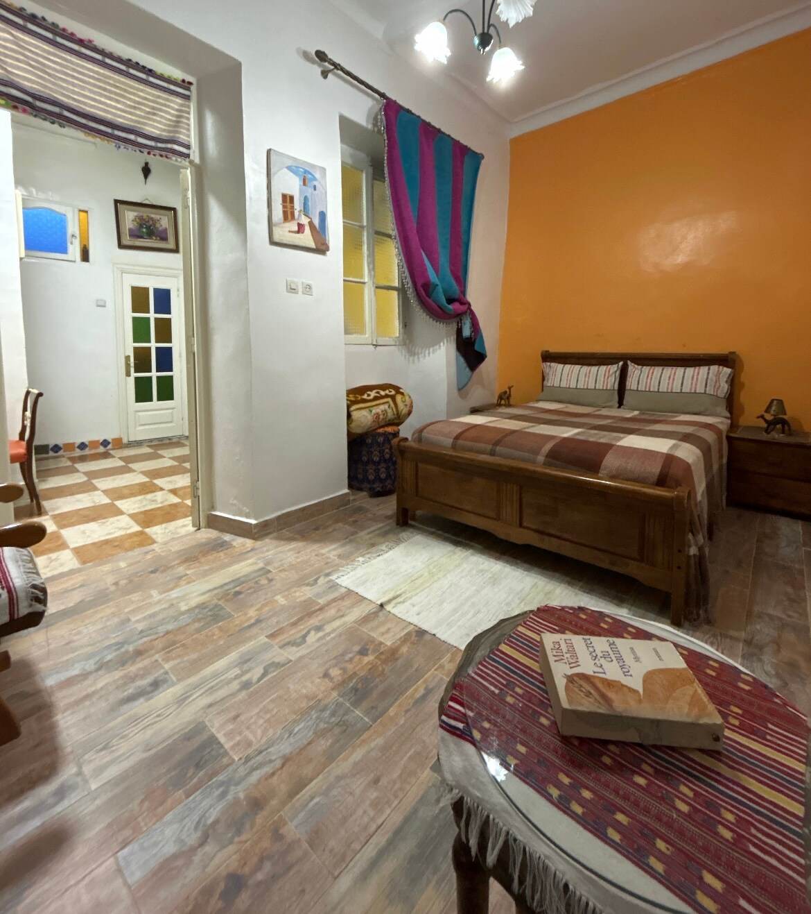 "Charming accommodation in Tangier! Discover a cozy bedroom, an original kitchen, a welcoming living room, and a sunny patio. Enjoy the comfort and style of this unique space." "Charmant hébergement à Tanger, situé en plein cœur de la ville ! Découvrez une chambre douillette, une cuisine originale, un salon accueillant et un patio ensoleillé. Profitez du confort et du style de cet espace unique."