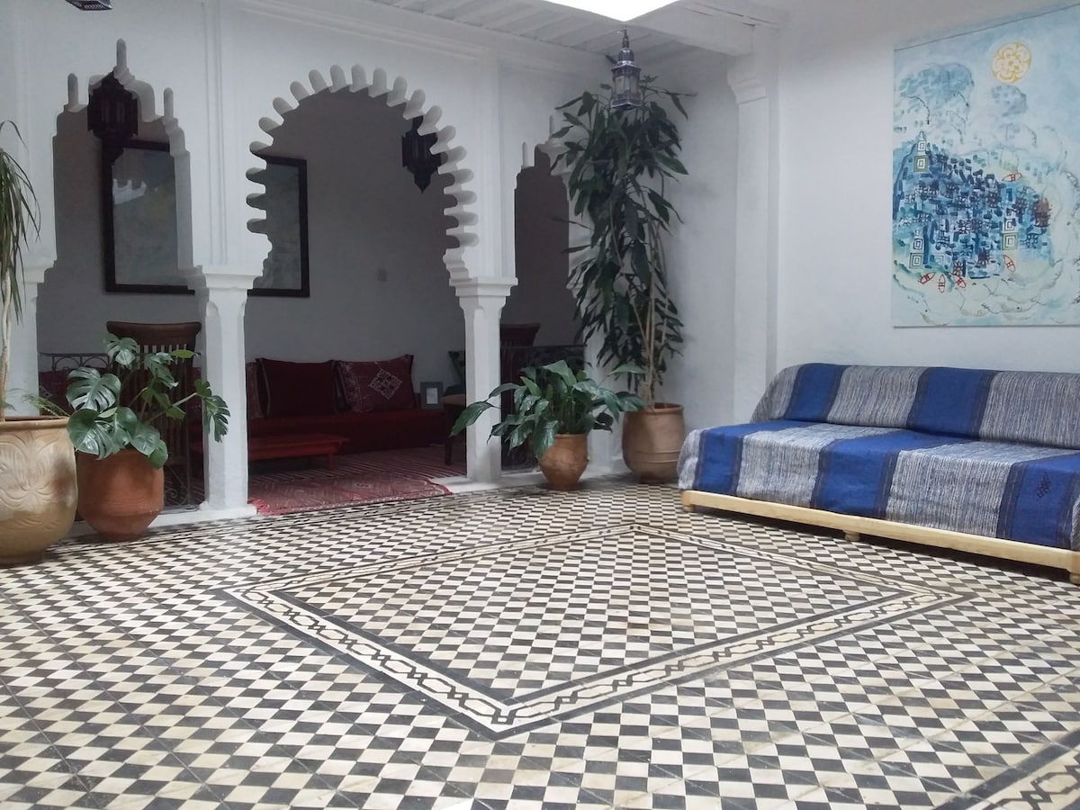 Riad Detroit offers stunning Mediterranean Sea views from every room, overlooking Tarifa, Spain, and the Strait of Gibraltar. Enjoy two balconies with breathtaking sea and beach views. This 300-year-old villa has been expertly remodeled with modern amenities. Centrally located on the Old Medina wall, it’s just a 5-minute walk to the Kasbah and Petit Socco. We assist with luggage due to stairs, common in traditional Riads. Let us make your stay unforgettable.