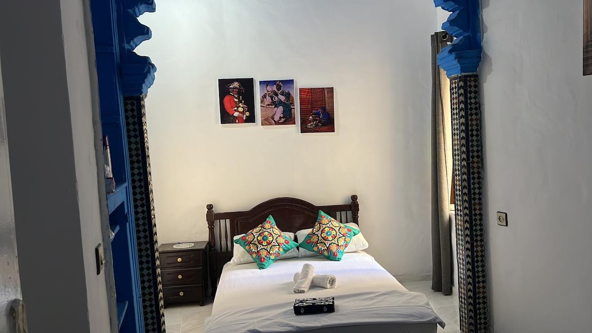 Dar Bab Haha maison de style marocain au charme unique donne sur la place Machoir. Vous pourrez profiter d'une vue sur la mer Méditerranée tout en dégustant un repas convivial sur la terrasse. La maison est divisée en 2 étages, au rez-de-chaussée vous trouverez une cuisine équipée et une salle de bain avec douche italienne, au 1er étage se trouve la chambre ainsi qu'un salon avec Smart TV et wifi fibre optique. À Noter: Il faut présenter l’acte de mariage lors du check in .