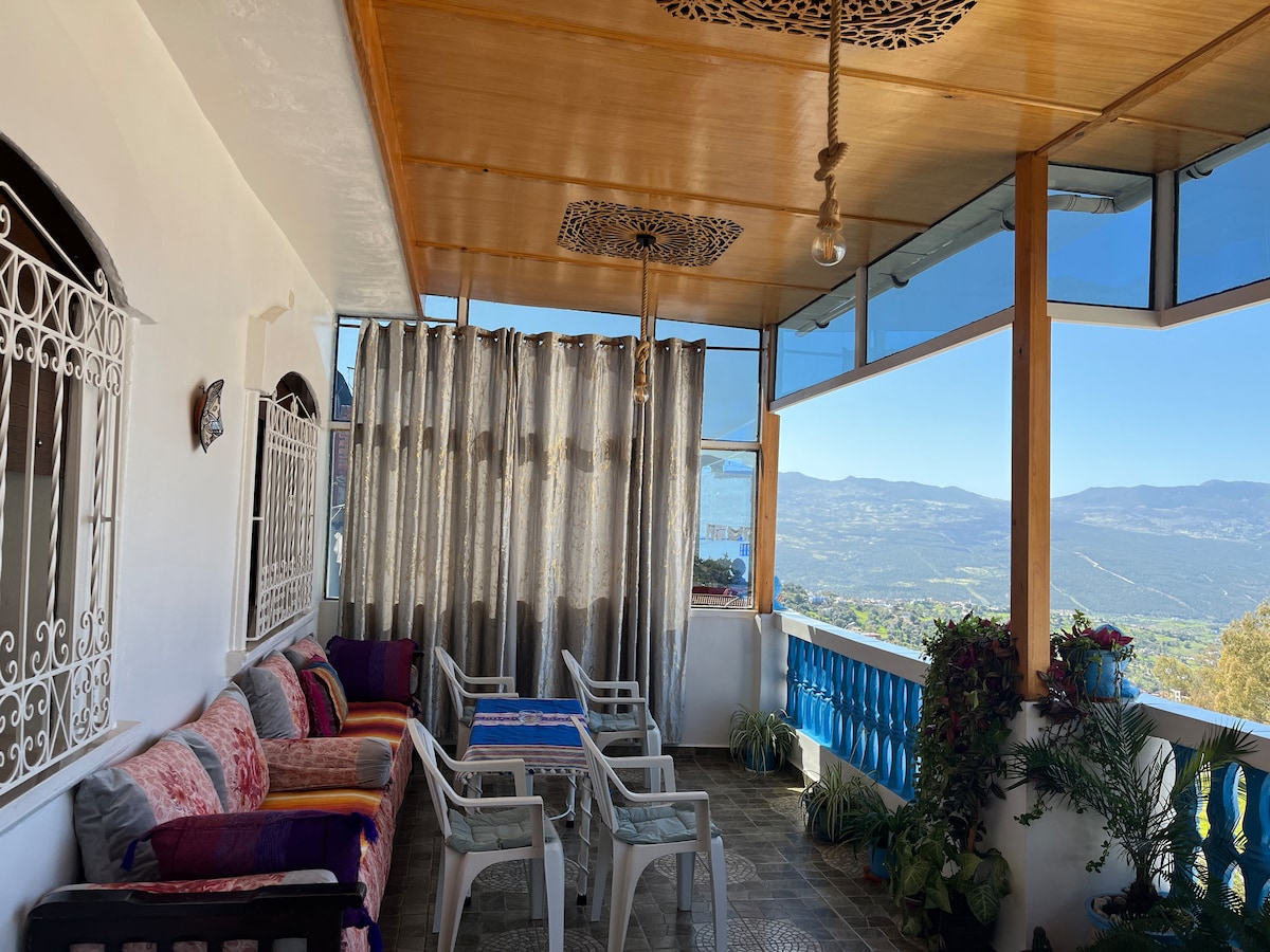 This spacious apartment located 1km away from downtown,offers breathtaking views of the city's iconic blue streets and surrounding mountains. Equipped with modern amenities, including , a fully stocked kitchen, Wi-Fi, and a comfortable living area, our apartment ensures a comfortable and convenient stay. The stylish decor blends traditional Moroccan elements with contemporary touches, creating a unique and inviting atmosphE