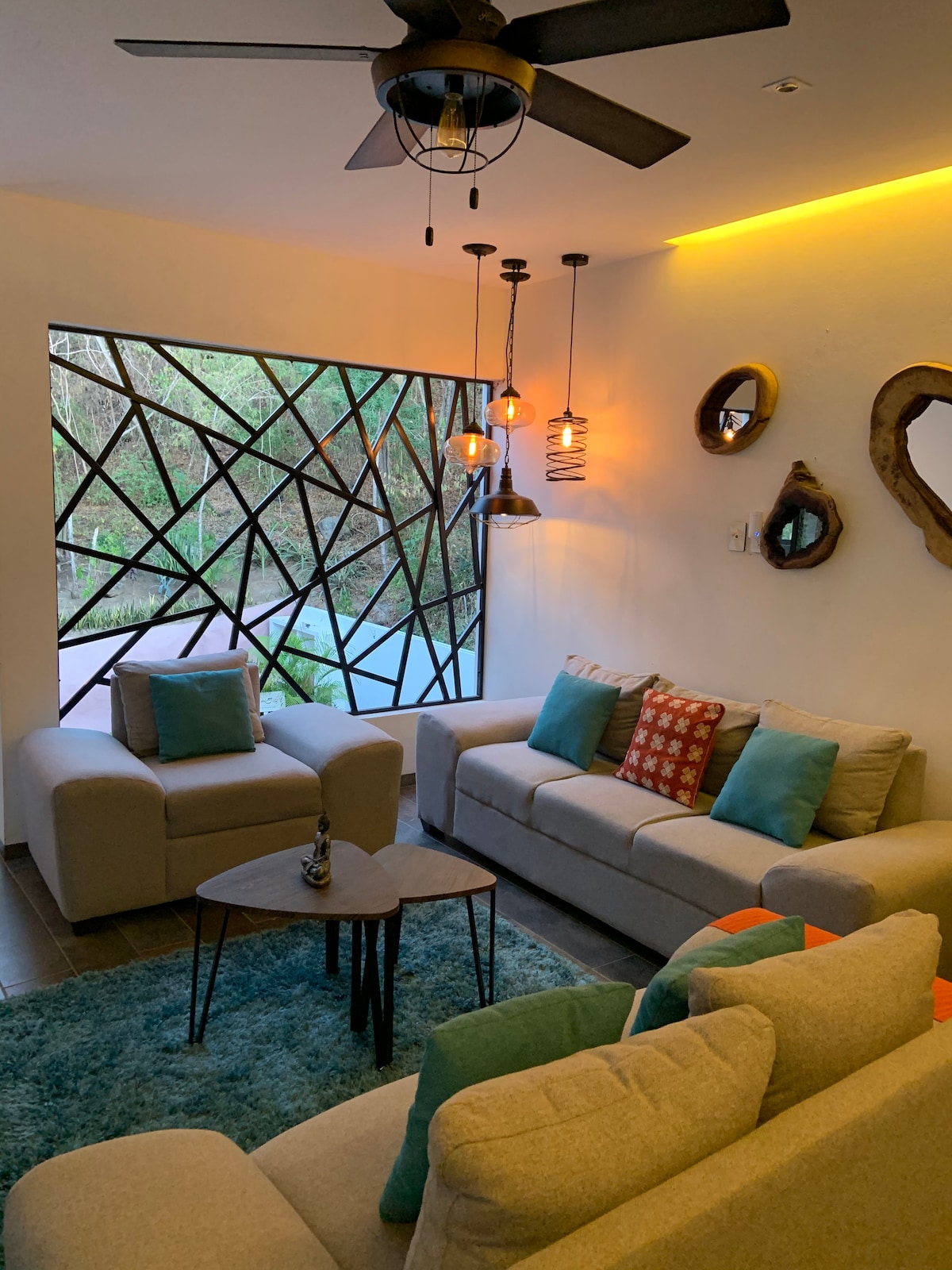 The house is very cozy, while spacious, bright and fresh. It is ideal for families and couples. It is surrounded by large windows, all overlooking the garden. It has different spaces that invite to tranquility and relaxation. It is located very close to 5 of the 9 bays that comprise "Bahías de Huatulco", in a safe, well communicated residential area, near the city center (where there are shops, restaurants, bars, tourism agencies, rental of cars and bicycles...)