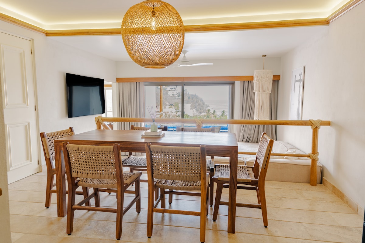 🌊 Moderno y acogedor Condo con una vista espectacular al mar en el exclusivo Hotel Camino Real Zaachila. El lugar es perfecto para relajarse, cuenta con alberca privada, WiFi, AC y lo mejor, acceso incluido a la playa y a todas las instalaciones de Hotel! . ¡Es tu escapada ideal en Huatulco! 📍Ubicado en una colina junto al mar con senderos y escalinatas para disfrutar la naturaleza, NO CUENTA CON ELEVADORES. 🚙 EL SERVICIO DE BELL BOYS ESTÁ DISPONIBLE PARA TU CHECK IN Y CHECK OUT.