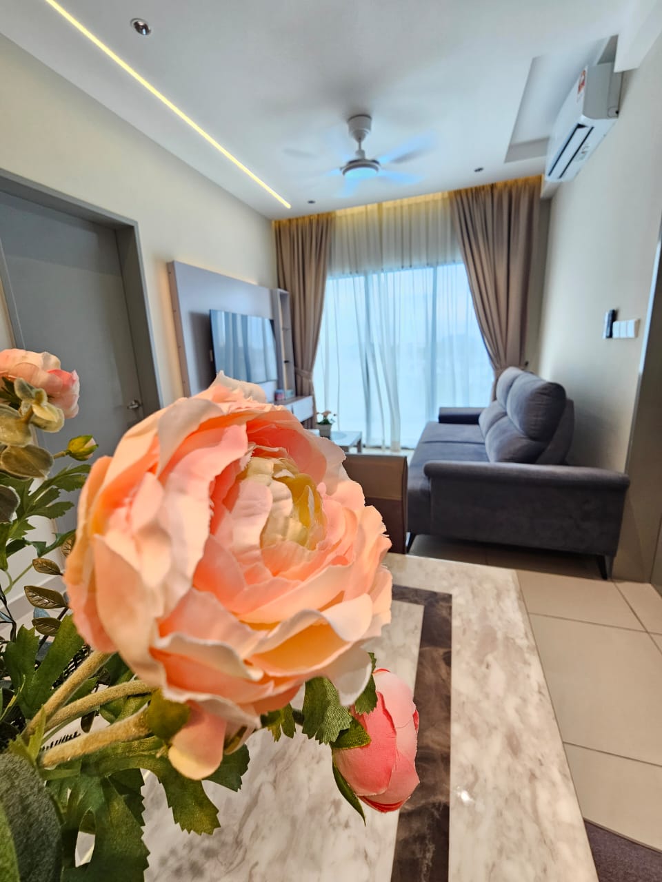 Comfortable and relaxing townhouse with sunrise view on spacious balcony. This upper level townhouse has 3 bedrooms and 2 bathrooms which can accommodates up to 7 people. A car parking will be available and extra tourist parking just in front of the door. Enjoy the greeneries with outdoor gym facilities and endless jogging track. Great amenities and neighbourhood nearby such as Eco Grandeur, UiTM Puncak Alam and many others. Seafood lovers can head to Pantai Remis beach and Kuala Selangor too.