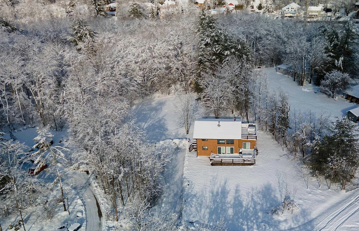 Slopeside 1BR cabin sleeps 4! Step right onto Hunter Mountain from your porch or drive 5 min to scenic hiking trails. Prime location near the charming, colorful village of Tannersville. Enjoy a fully stocked kitchen & bath, high-speed WiFi, and an entertainment system with Netflix & all your other favorite streaming! Stay longer with the convenience of a W/D & dishwasher. Cozy up by the fireplace, take in the mountain views, or explore nearby dining, breweries, and outdoor adventures year-round!