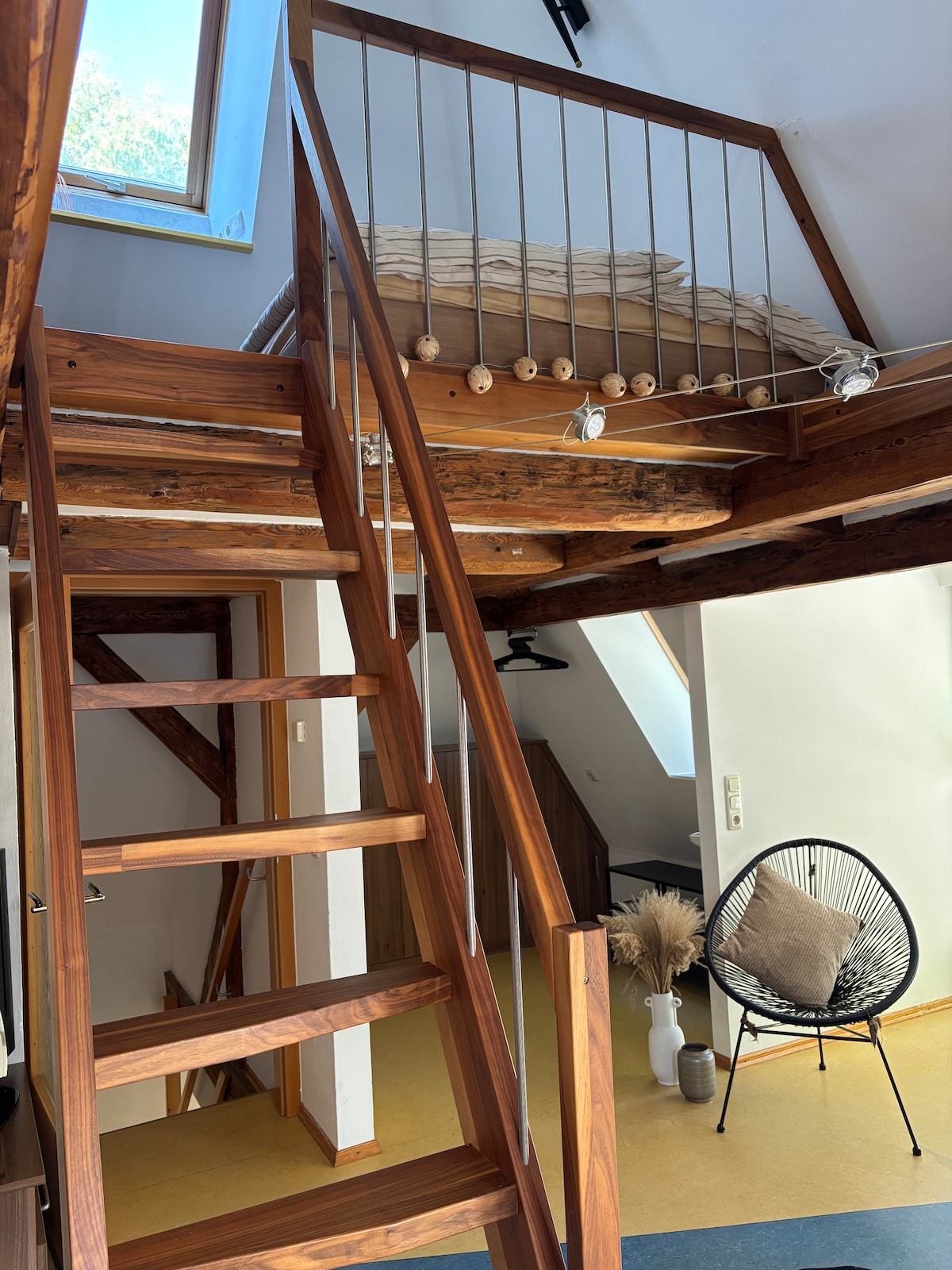 Diese besondere Unterkunft hat einen ganz eigenen Stil. Wir hatten Lust, aus dem alten, sanierungsbedürftigen Gebäude aus den 50er Jahren etwas Attraktives zu machen. Vor allem der große Garten mit altem Baumbestand und die wunderschöne Lage nahe Regensburg haben uns motiviert, das Haus individuell auf den alten Grundmauern neu zu gestalten.