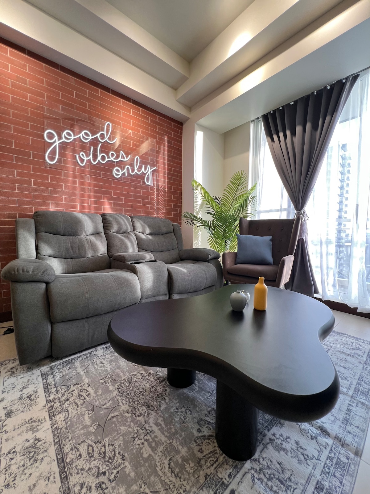 The Glasshouse Loft with Pool is a relaxing staycation rental located in Tierra Nevada, General Trias, Cavite. The loft boasts a unique blend of wood and industrial interior design, creating a rustic yet modern aesthetic. The ambience is serene and chill, perfect for those who want to unwind. Whether you're looking for a quick escape from the city or a longer vacation, the Glasshouse Loft is the perfect getaway destination. Kindly read house rules below before booking. Minimum Rental Age is 18.