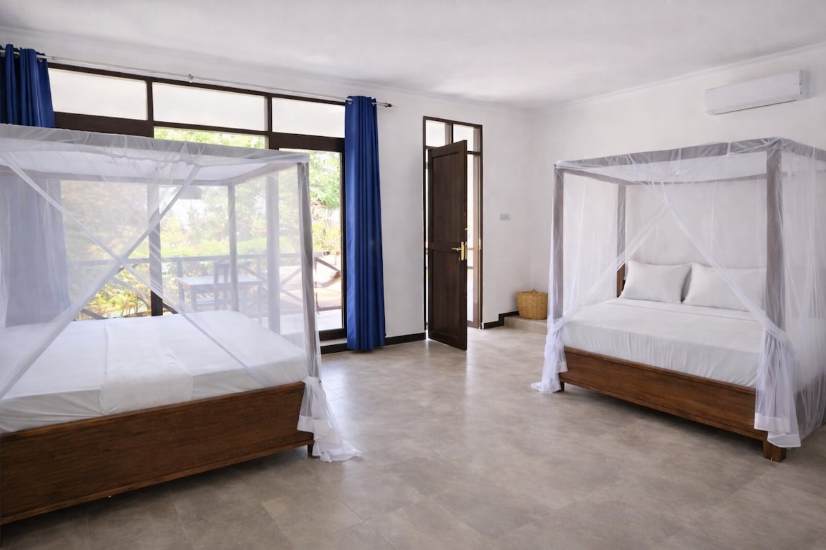 Welcome to Majani Breeze — your peaceful escape in Nungwi, Zanzibar. Set on a gentle slope with views of lush tropical gardens, this Standard Twin Room features a private balcony perfect for relaxing and soaking in the beauty around you. We’re just a short walk from the peaceful Sazani Beach for sunrise views, and only five minutes from Nungwi’s white sandy beach, ideal for watching sunsets over crystal-clear waters. This tranquil retreat blends natural beauty with comfort.