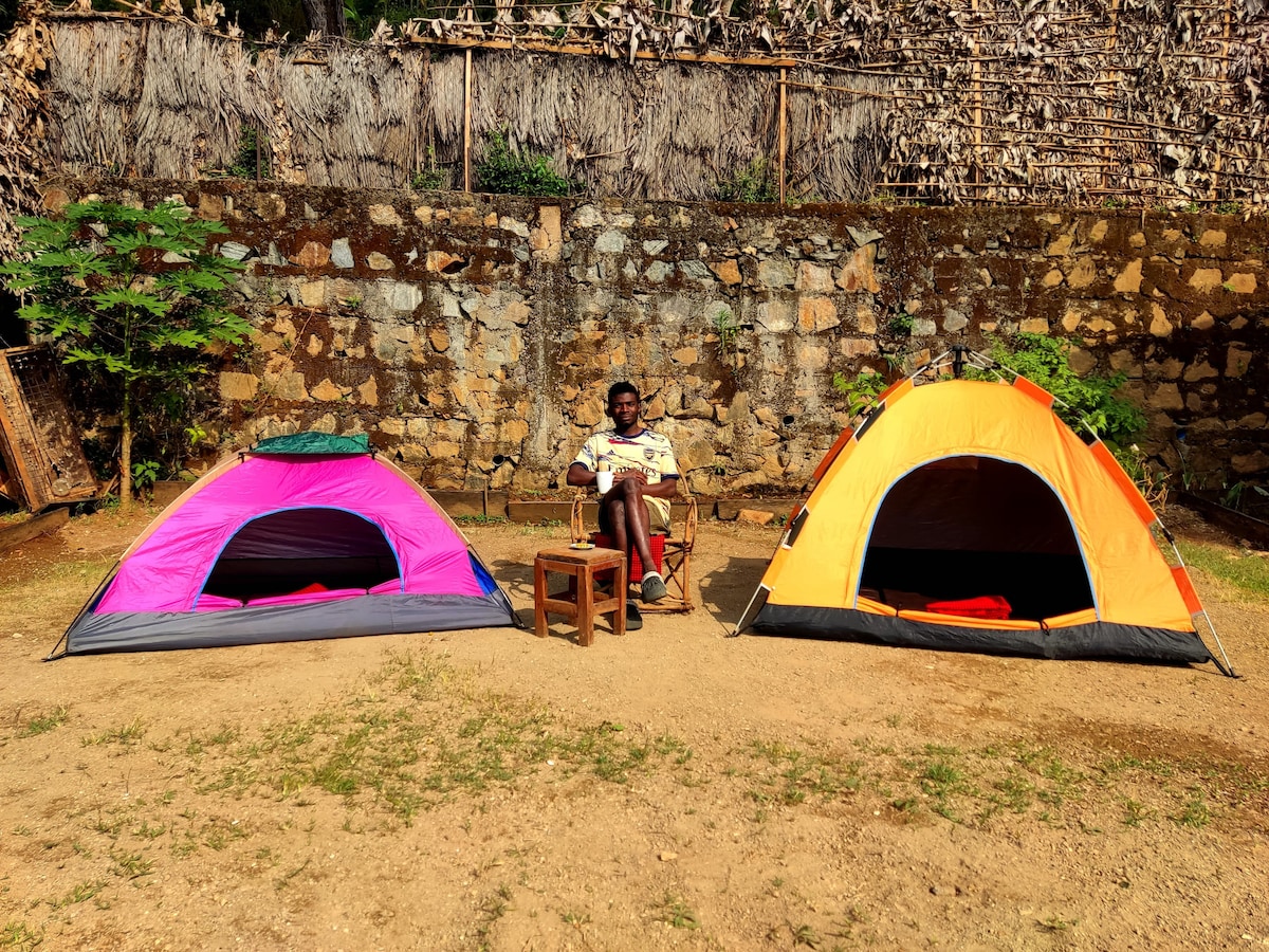 Enjoy the lovely setting of this romantic spot in nature.Sleep with the soothing sound of a waterfall,our tents are more than a bedroom,they are cosy and comfortable. There are two ways you can get to our camping site,one is by motorbike which we can arrange it for you,the second way is by hiking,it takes one hour from town to the top of the mountain by hiking. WIFI is available. You are all welcome.