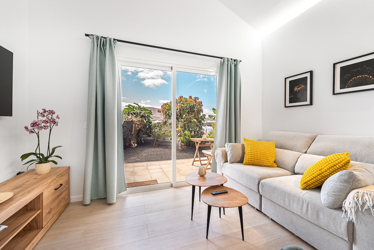 Wohne in einem (von insgesamt zwei) bezaubernden 80qm Modern Hippie-Apartment mit einzigartigem Blick auf den Timanfaya Nationalpark & seine Vulkane. Mit sonniger Küche, geräumigem Wohnzimmer mit Panoramaschiebetür & (Schlaf)Couch, HDTV, Glasfaser-Internet, kuscheligem Schlafzimmer und kanarischem En Suite-Bad. Chille auf deiner privaten Terrasse, tauche deine Zehen in den César Manrique-Salzwasserpool, genieße die unendliche Weite und staune über magische Sonnenuntergänge.