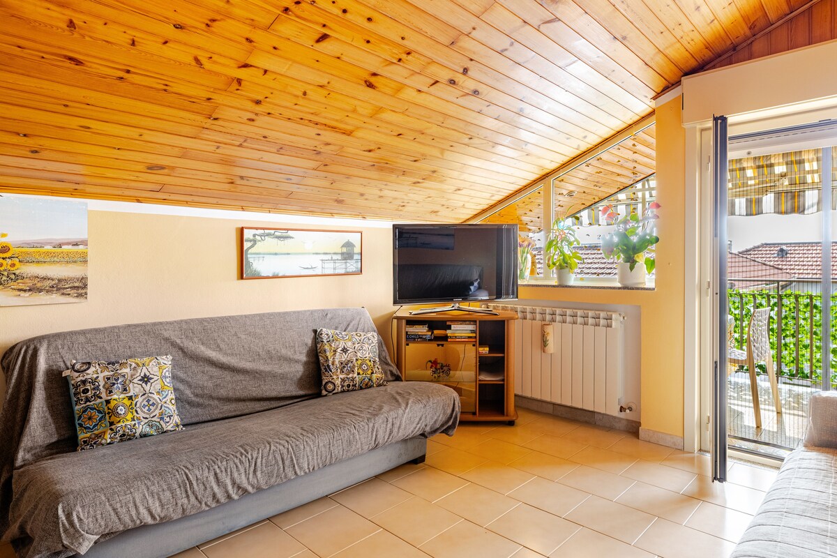 Appartamento di 120 mq con terrazzo: luminoso, silenzioso, elegantemente arredato in stile siciliano. Una vera casa ricca di personalità, con mobili antichi, ferro battuto, pietra lavica e terrecotte lavorate da sapienti artigiani che raccontano tutta la bellezza e la forza di questa terra. Le grandi finestre permettono sempre di vedere il mare quando si è in casa. Il delizioso terrazzo vi consentirà di godere di ogni momento: pranzare, leggere un libro e bere un buon bicchiere di vino.