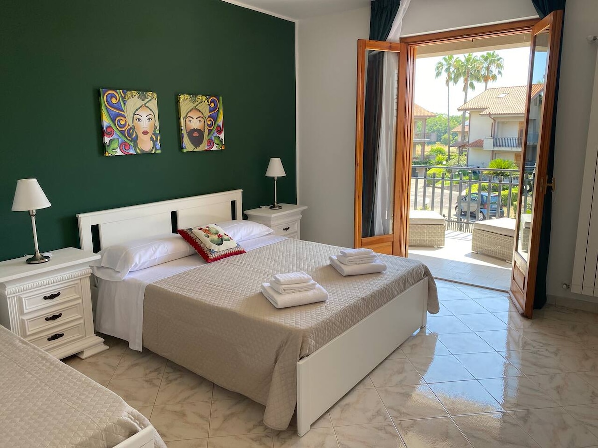 RANKED IN THE TOP 1% OF THE BEST AIRBNBS IN THE WORLD! House of Palms is a modern retreat with chic interior, WiFi, AC, self-checkin, smart TV, well-equipped kitchen, and rooftop terrace. Nestled atop a palm nursery hill, 5-min walk from sea, markets, and bars. A secure, charming haven with free parking, BBQ, and backyard. Explore Sicily and the Mediterranean with at-home comfort. 35-min drive to Etna and Taormina. Unwind in a tastefully designed space, balancing aesthetics and functionality.