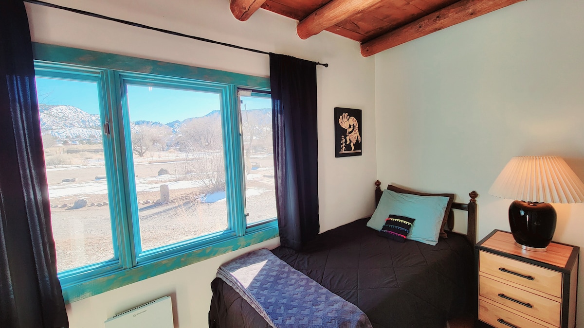 Pristine Private Beach Access! Come experience a 100 year old Adobe House, providing all the modern living amenities while keeping the old world flavor & architectural details. This is one of 3 bedrooms available sharing a luxury bathroom & access to laundry room, as well as a coffee/tea station area. Twin size bed. Private keycode access. River Rafting on Rio Grande, hikes on BLM land (across), private yoga & art classes, massage & hypnotherapy are part of Un'U Center potential choices.