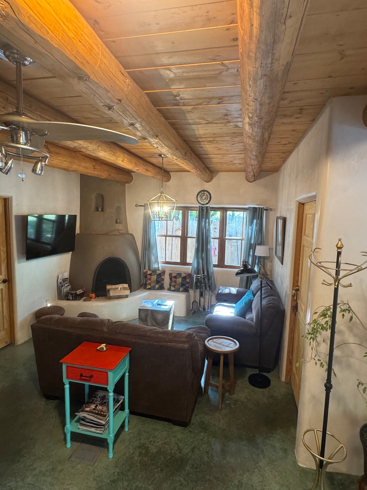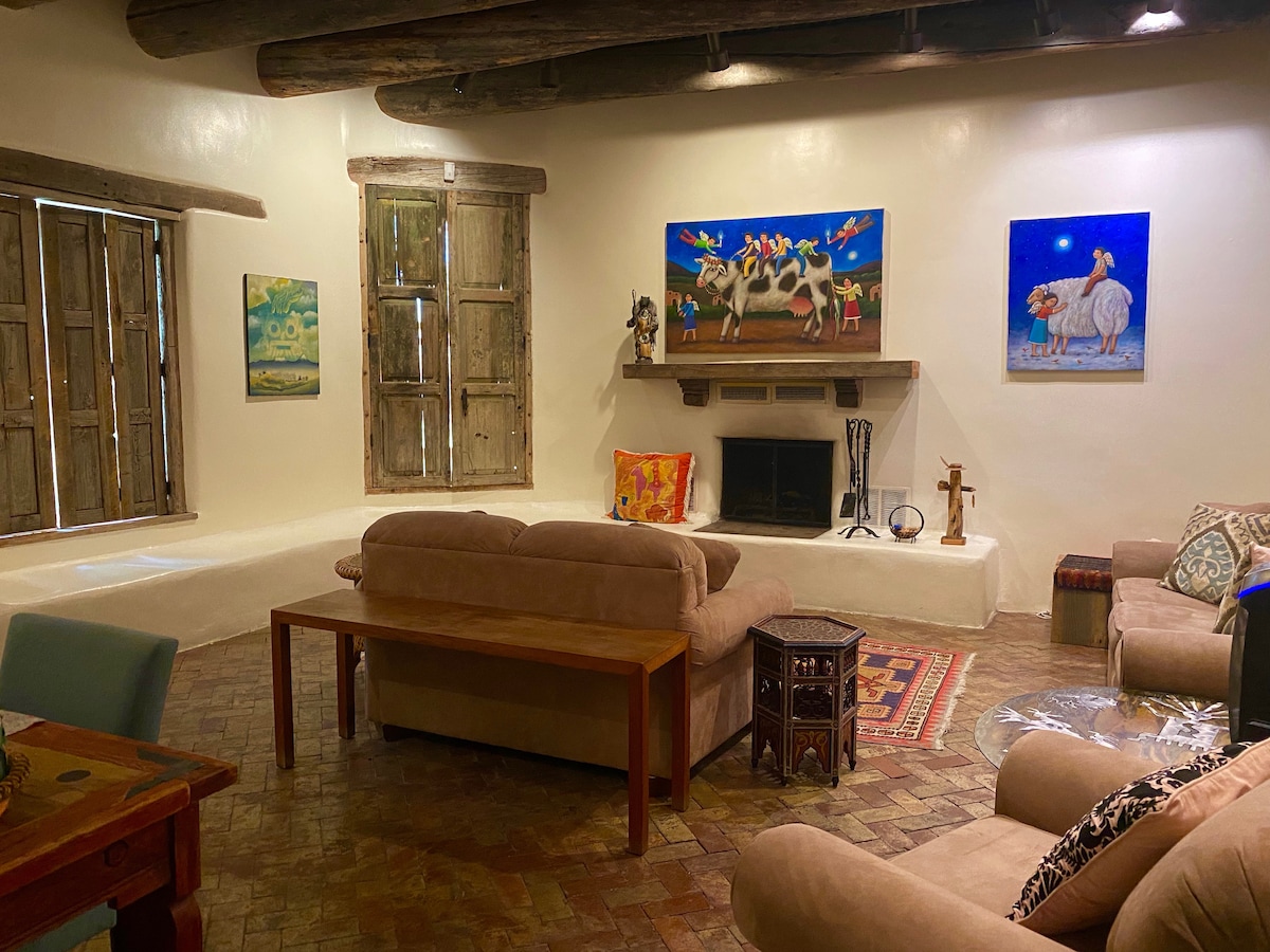 Amazing Views, Peaceful, and Close to Skiing & Plaza Come relax and enjoy a true Taos experience in this authentic adobe with warm southwestern charm. This is the premier casita among three connected but private guesthouses. Enjoy spectacular Mountain views from your private upstairs patio and downstairs deck. Curl up with a book next to the kiva fireplace or enjoy a gourmet meal in the fully appointed kitchen. Located just 10 minutes from downtown and 20 minutes from the Taos Ski Valley.