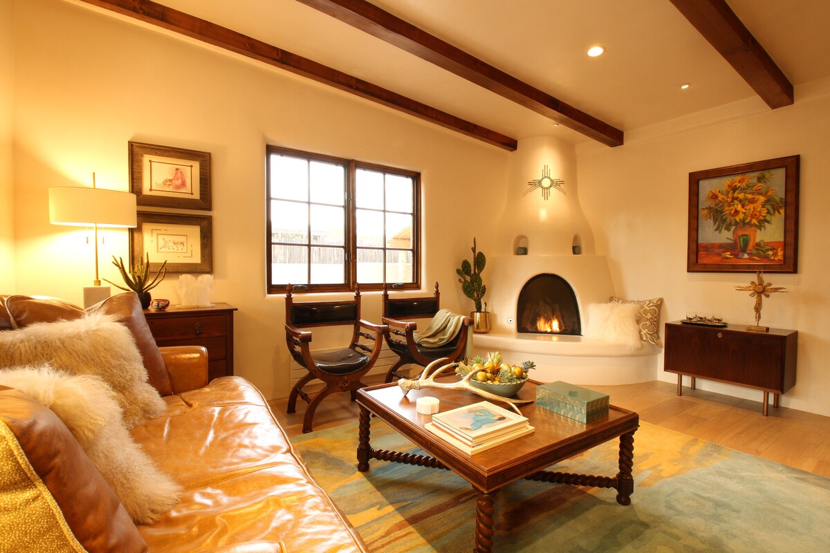 Located in the Taos Historic District, Casa Zia is 2 blocks North of Taos Plaza/Bent Street area, within easy walking distance to popular galleries, studios, museums, and shopping, as well as many great restaurants. This early-century Spanish Pueblo Revival home was recently reconstructed and updated, fusing traditional period structure and materials with current technology amenities, including fiber optic Internet.