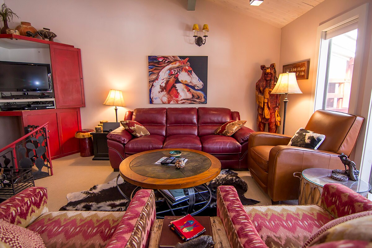 Welcome to our cozy Taos Ski Valley condo! This spacious and homey condo is located just a hop skip and jump away from Lift 1 (1.5 miles from Taos Ski Valley !!) This 2 bedroom, 1.5 bathroom condo sleeps 6 comfortably. Couch has comfy Queen pullout. This retreat offers a perfect blend of comfort and convenience for your ski adventure. Enjoy the balcony with the soothing sound of the Gavilan stream rushing down from the peak year round.
