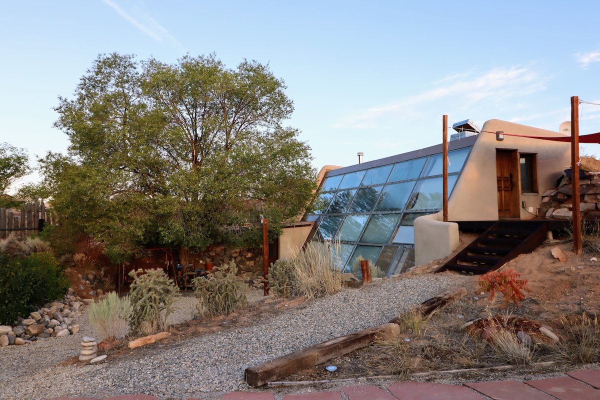 FREE Wi-Fi FREE Hot Tub FREE Firewood FREE Parking Stay in a unique, eco-friendly Earthship surrounded by the beauty of the New Mexico desert. This 2-bedroom, 1-bath home blends sustainable design with modern comfort, offering natural light, cozy spaces, and stunning mountain views. Relax in the private spa under star-filled skies or explore nearby Taos, hiking trails, and ski areas. Perfect for couples, traveling professionals, or anyone looking for a one-of-a-kind getaway.
