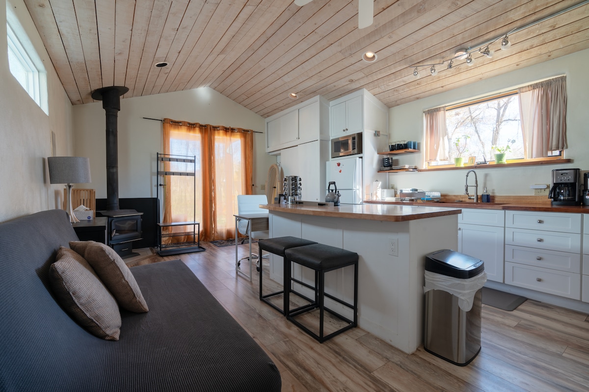 Please know that this is a NO PET property! The perfect tiny home base for all your adventures. Equipped with all the benefits of home, just on a smaller scale. Fully functional kitchen & bathroom. We’re located between Taos & Questa. Hiking, biking, rafting, fishing are all nearby, or go check out some of the hot springs instead. If you enjoy star gazing then you’ll love our dark nights. You won’t soon forget the lovely, peaceful surroundings of this tiny rustic destination.