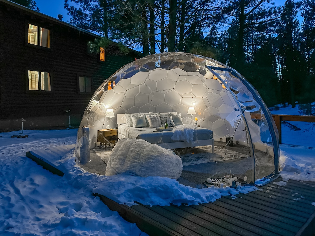 豪华原木房源,带独特的圆顶套房| 8分钟到滑雪场