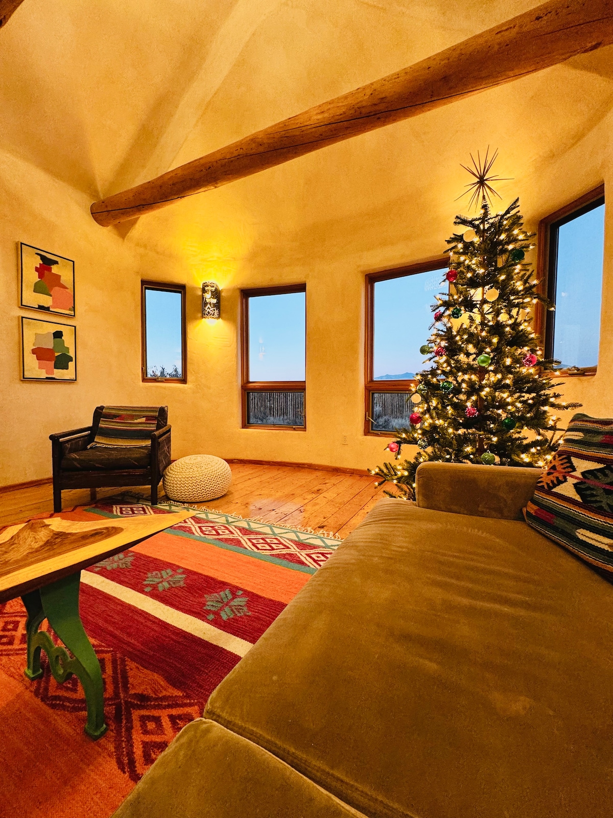 Artist Rod Goebel crafted this peaceful sanctuary-a residence, chapel, screened-in patio & guesthouse, on a stunning six acre beauty, fully fenced rural retreat. Enjoy a covered patio, grill. hot tub and partial kitchen with all the essentials. Just 12 mins from town, near Taos Ski Valley road. Pet friendly, sacred & private, our property was named the top Airbnb in Taos for 2025- "Only in New Mexico" online. Come unwind with art, nature's splendor and true relaxation, under starry skies.