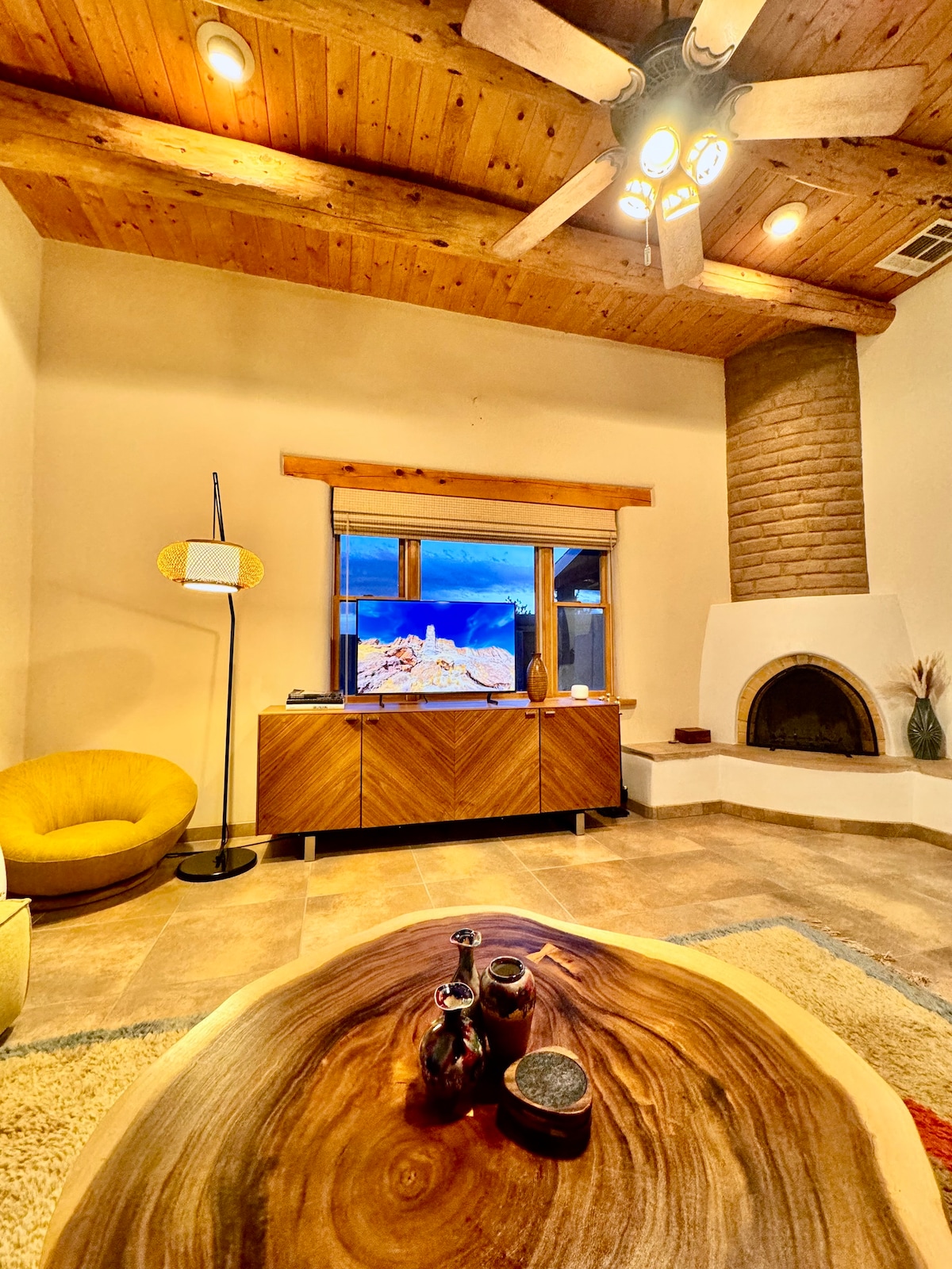 Located in the Taos Historic District, Casa Zia is 2 blocks North of Taos Plaza/Bent Street area, within easy walking distance to popular galleries, studios, museums, and shopping, as well as many great restaurants. This early-century Spanish Pueblo Revival home was recently reconstructed and updated, fusing traditional period structure and materials with current technology amenities, including fiber optic Internet.