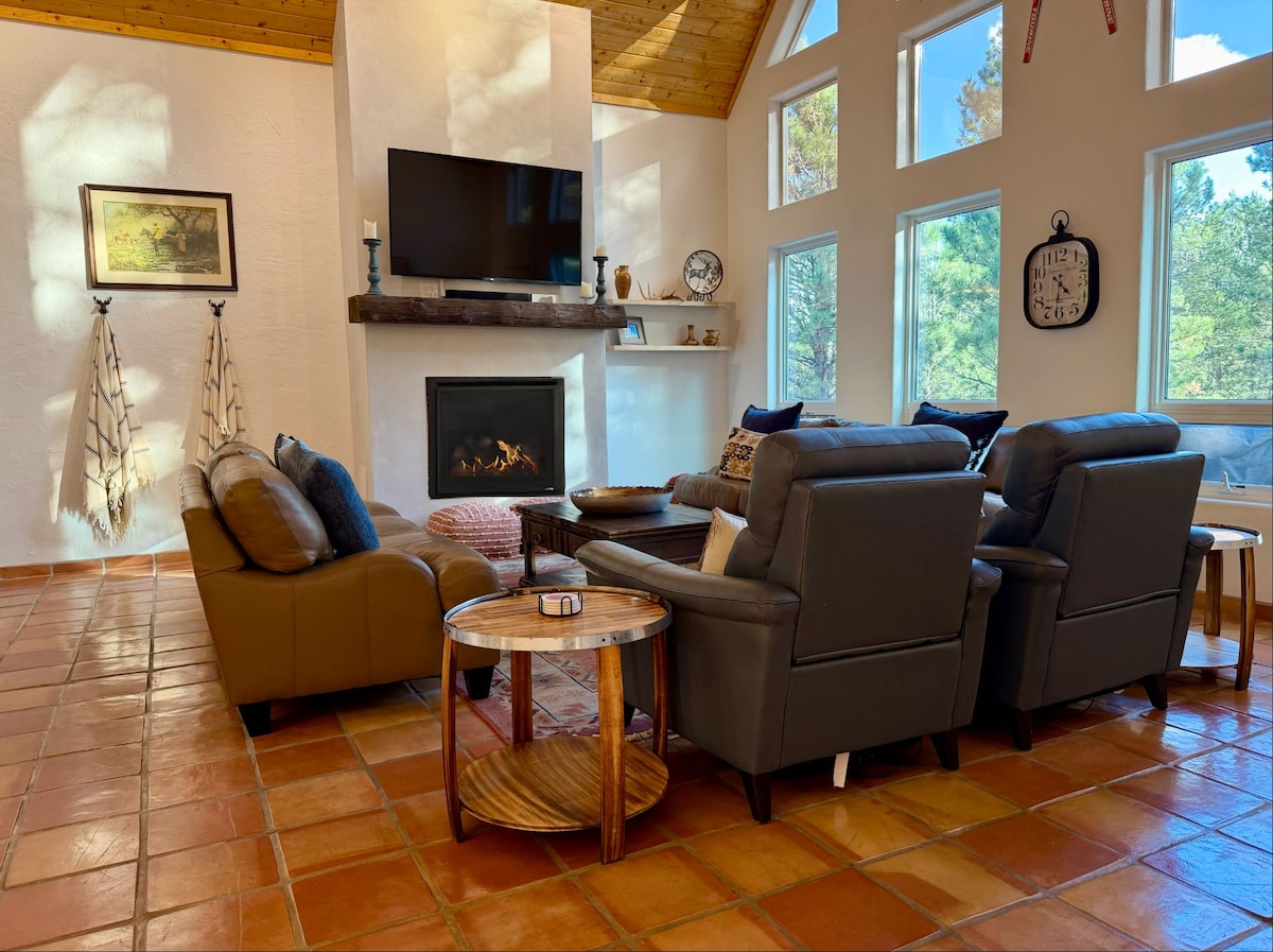 10 Acres | Year-Round Adventures | Dog Friendly w/ Fee This cabin towers above the forest floor, framed by conifers, aspens, and sweeping views of the Moreno Valley, Angel Fire Resort, and the Sangre de Cristos. Inside, the 3-bed + spacious loft, 3-bath cabin pairs lodge-style comfort with mountain luxury. Surrounded by alpine beauty and top-notch resort perks, this retreat invites you to ski fresh powder, fish in the lake, tee off on PGA-rated greens, or bike the acclaimed mountain terrain.