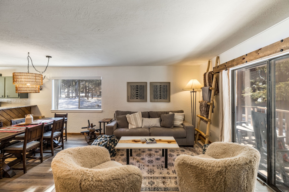 Remodeled just last year! Sure to be the coolest condo in Angel Fire! 😎 This fun rendezvous is nestled in the woods of the Pinetree Commons complex. It's only 2 blocks from the AF Resort. Close to skiing, biking, hiking, golf and more! Grab a drink and enjoy one of the 2 outdoor balconies or cozy up by the fire. The interior is fun and inviting... with eclectic murals and decor offering a different experience than anything in the area! Perfect for families/friend groups! 😊