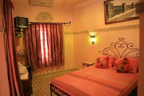 The rooms are distributed around a patio adorned with columns, stucco, marble and blue zelliges. It is a traditional house which has retained its original decoration. The bedroom is equipped with a bathroom. The reception is available 24 hours a day and accessible by car. We offer the services of an official guide to visit the medina outside the tourist circuits. We put our customers first and ensure that personal expectations are met