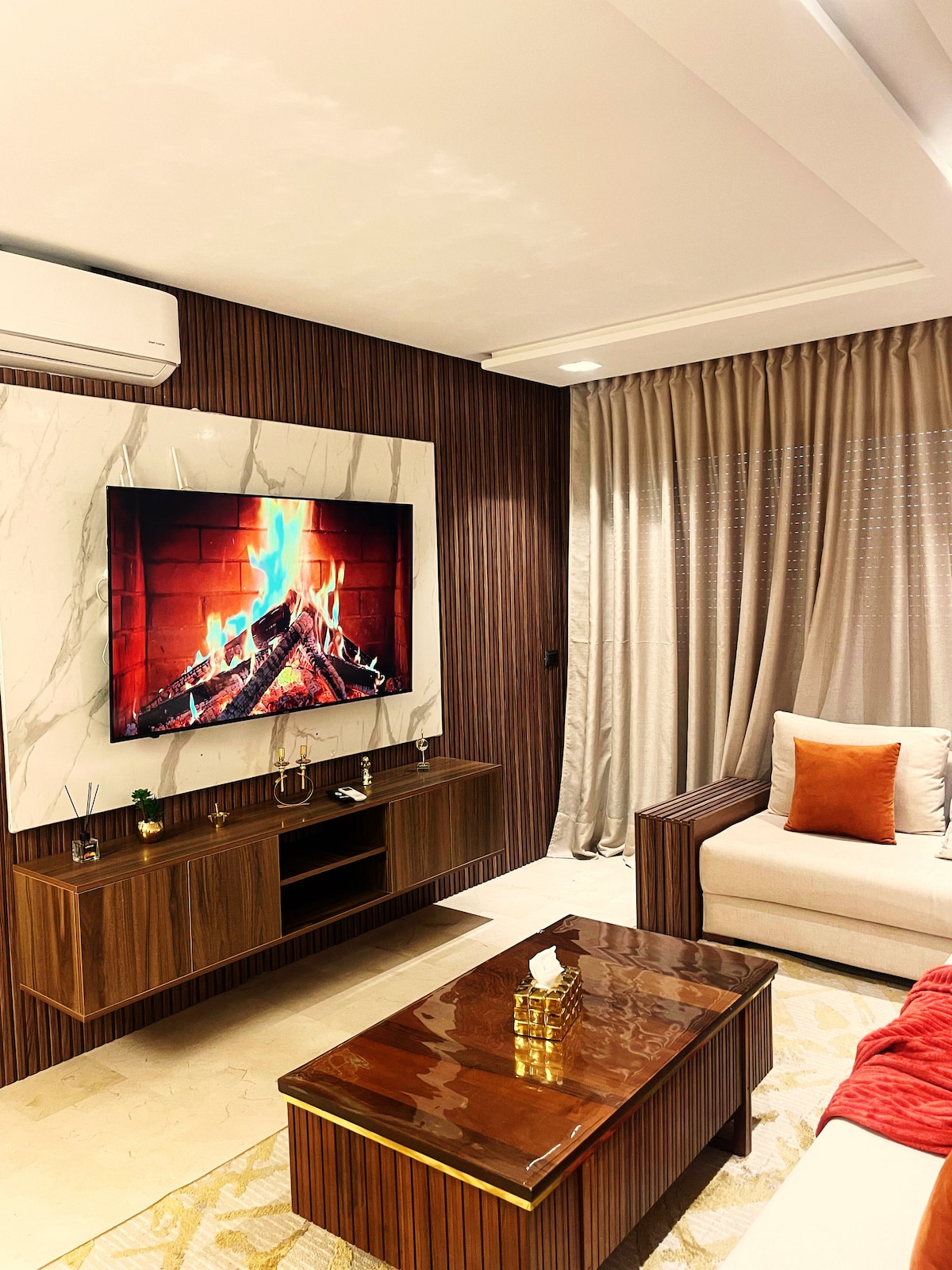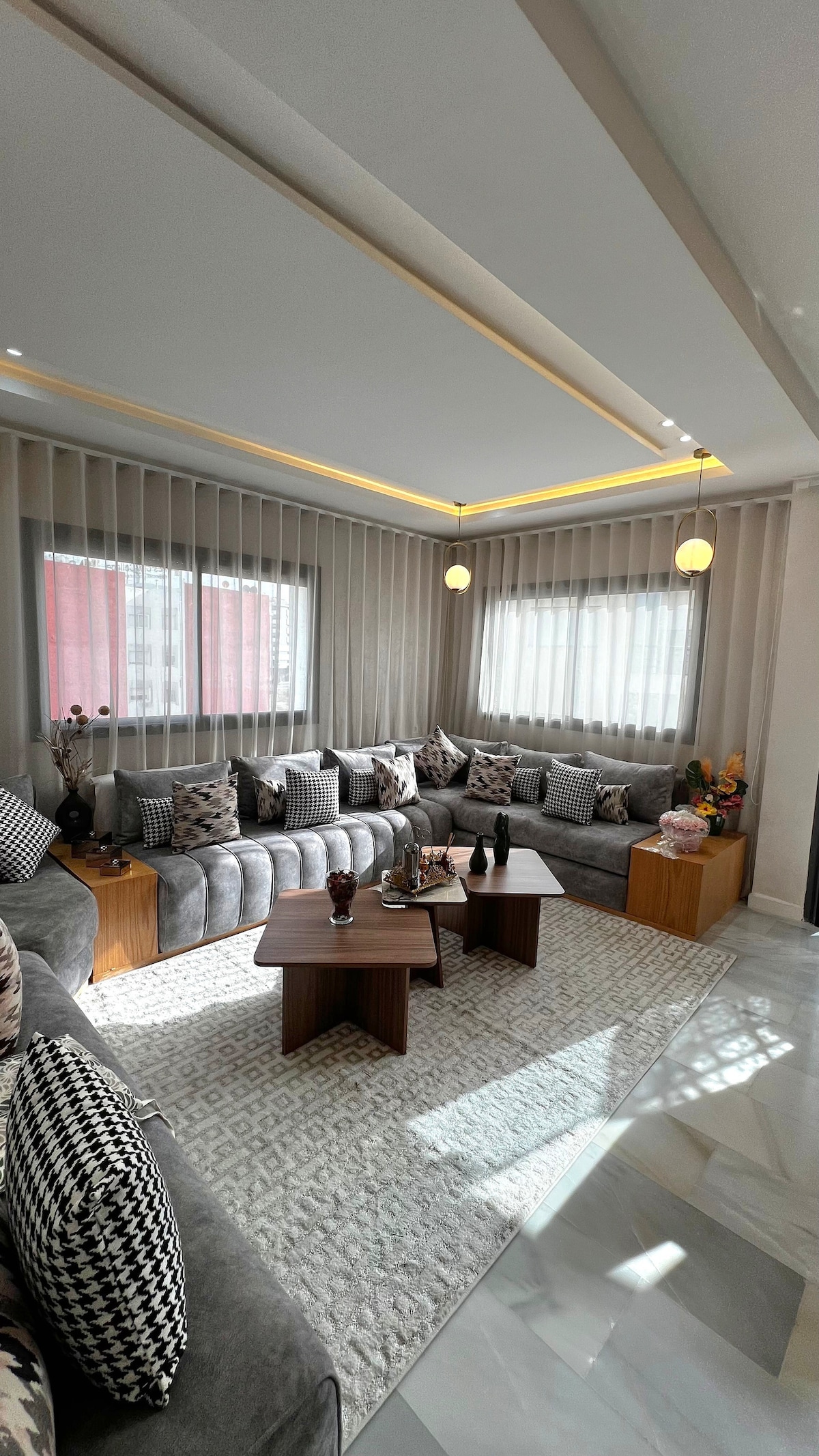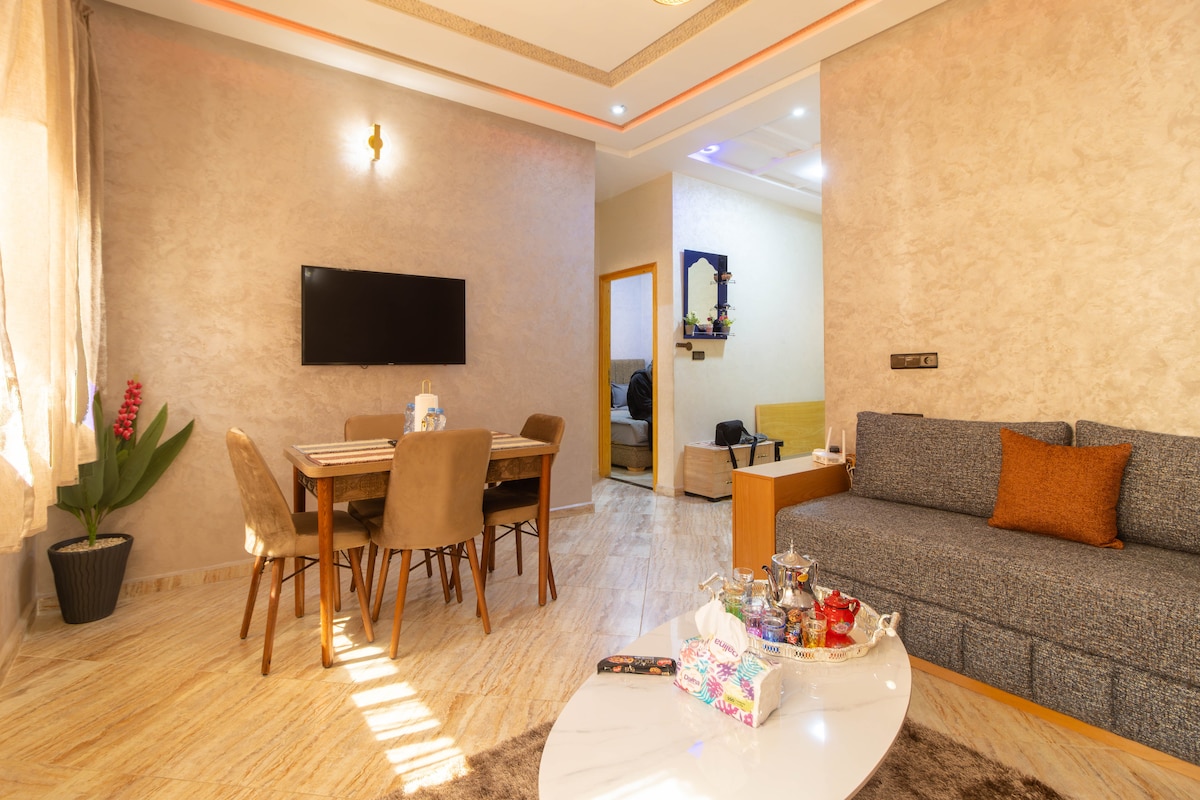 Appartement situé au coeur de Fès avec une vue imprenable sur le parc meublé avec beaucoup de goût et entièrement équipé pour un séjour mémorable. Il est composé de : - 2 chambres avec une literie confortable - 2 salles de bain - une salle à manger - un salon avec écran TV - une cuisine équipée (four, réfrigérateur, micro-ondes, cuisinière 4 feux .. ) - un balcon pour prendre de l’air avec vue Cet appartement est destiné aux couples marocains mariés , familles, et touristes étrangers.