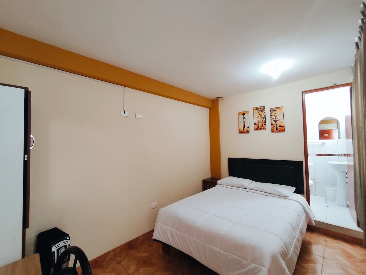 Vive la magia del Valle del Colca en un acogedor loft a solo 500 m de la Plaza de Armas. Pensado para 2 viajeros, ofrece un espacio flexible con cortinas divisorias, sala-comedor abierto con Smart TV y Netflix, cocina equipada y baño con ducha caliente (solar y eléctrica). Además, cochera segura y conexión wifi disponible, ideal para móviles. Perfecto para descansar y explorar el Valle del Colca.