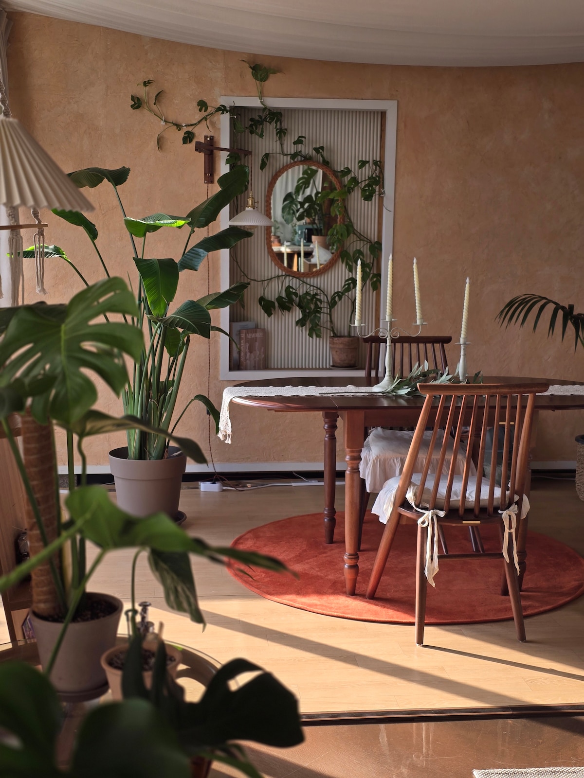 裕家轩是一座位于濟州机场附近的老虎形屋,坐落在诺亨洞。主屋和附房呈“ㄱ”形排列,中间有一个被济州石墙环绕的美丽花园。客人可以使用整个主屋,而附房则偶尔由房东用于花园维护和清洁。 主屋有着高高的屋架,内部使用红松木建造,让客人能够尽情感受传统老虎形屋的美。花园里有柿子树、榅子树和冬青等果树,秋天时结满了丰硕的果实,还有一个适合孩子们玩耍的草坪。 早晨醒来时,可以听到鸟鸣,眺望庭院,享用愉快的早餐。有时,甚至会有野鸡光临。
