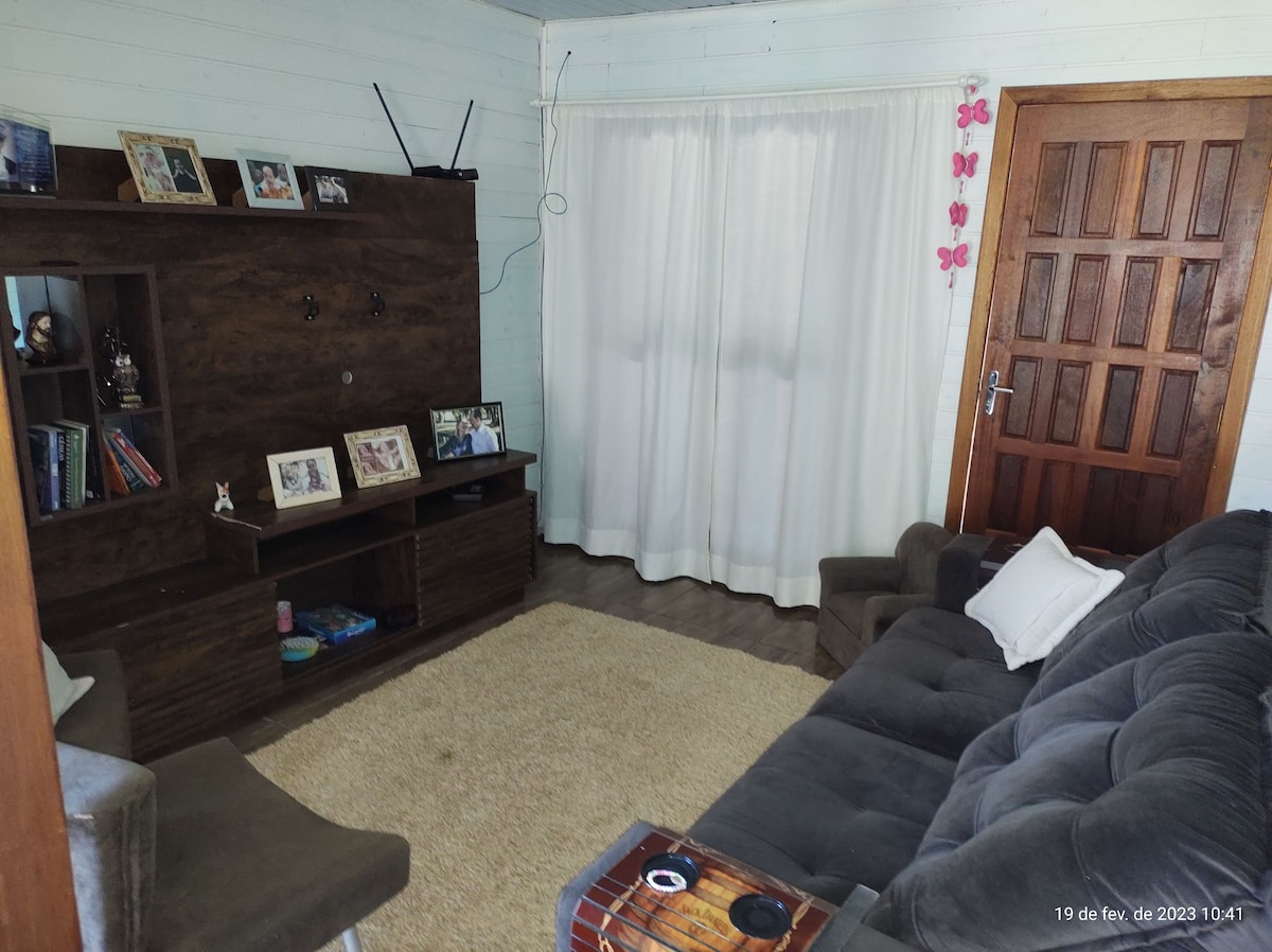 Uma cabana completa num sítio de 6,4 hectares, com mato nativo, açudes e muita privacidade (longe de vizinhos), onde se ouvem os sons da natureza. Está a 5 km do centro de Selbach, RS (onde existem atrações como o Minimundo Encantado, uma bela praça etc). Só 1,9 km de chão em excelente estado. Tem wifi e também recebe sinal das principais operadoras de telefonia. Recomendável uso de repelente de insetos. Leve apenas roupas de corpo e de banho (se levar roupas de cama pode negociar desconto).
