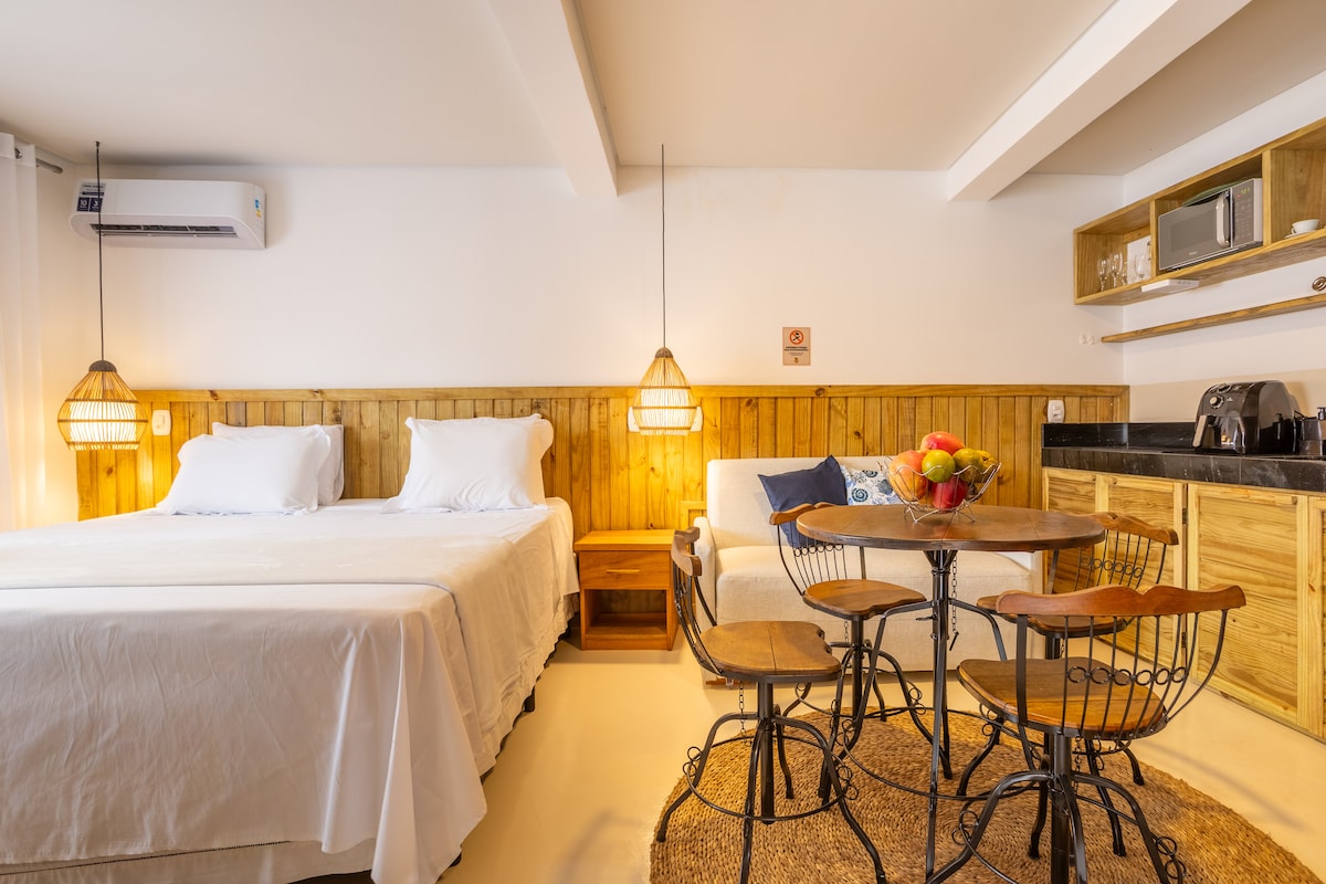 Bem-vindo a sua casa de praia em Arraial d’Ajuda Hospede-se no coração da charmosa Rua do Mucugê e viva Arraial com exclusividade. Nosso apartamento une conforto e sofisticação em cada detalhe, perfeita para quem busca conforto sem abrir mão do luxo. Aqui, tudo acontece a poucos passos: gastronomia, música, arte e o melhor da noite local. Uma experiência autêntica, onde cada instante é pensado para encantar.