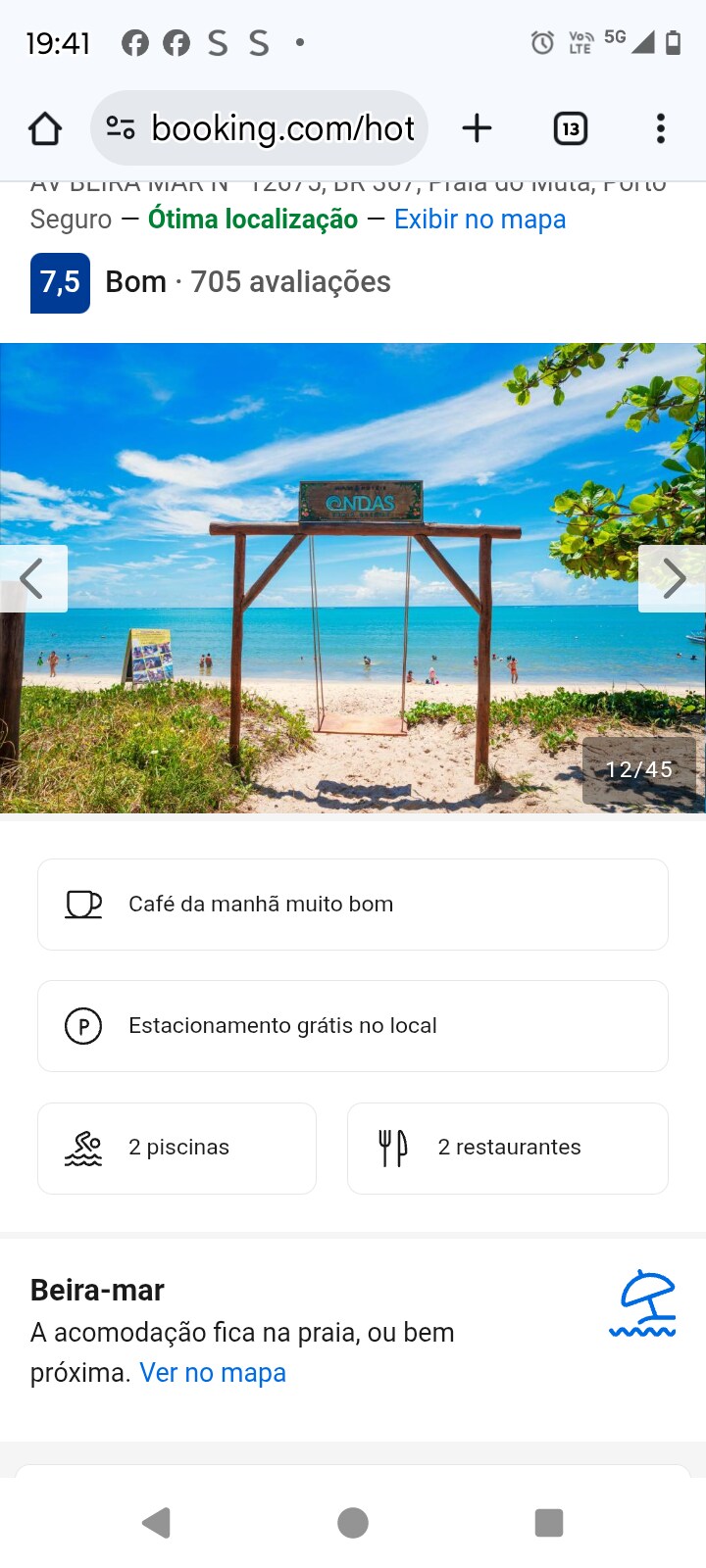 Hospede-se com conforto, praticidade e a poucos passos do mar! Apartamento localizado à beira-mar da Praia de Taperapuan, uma das praias mais famosas e completas de Porto Seguro, perfeita para quem busca descanso, lazer e ótima localização. O apartamento acomoda até 5 hóspedes, oferecendo conforto, funcionalidade e o clima acolhedor de um apart-hotel com a privacidade que você merece. Diferenciais que fazem a diferença: Localização frente ao mar Estrutura de apart-hotel Sem taxa de limpeza