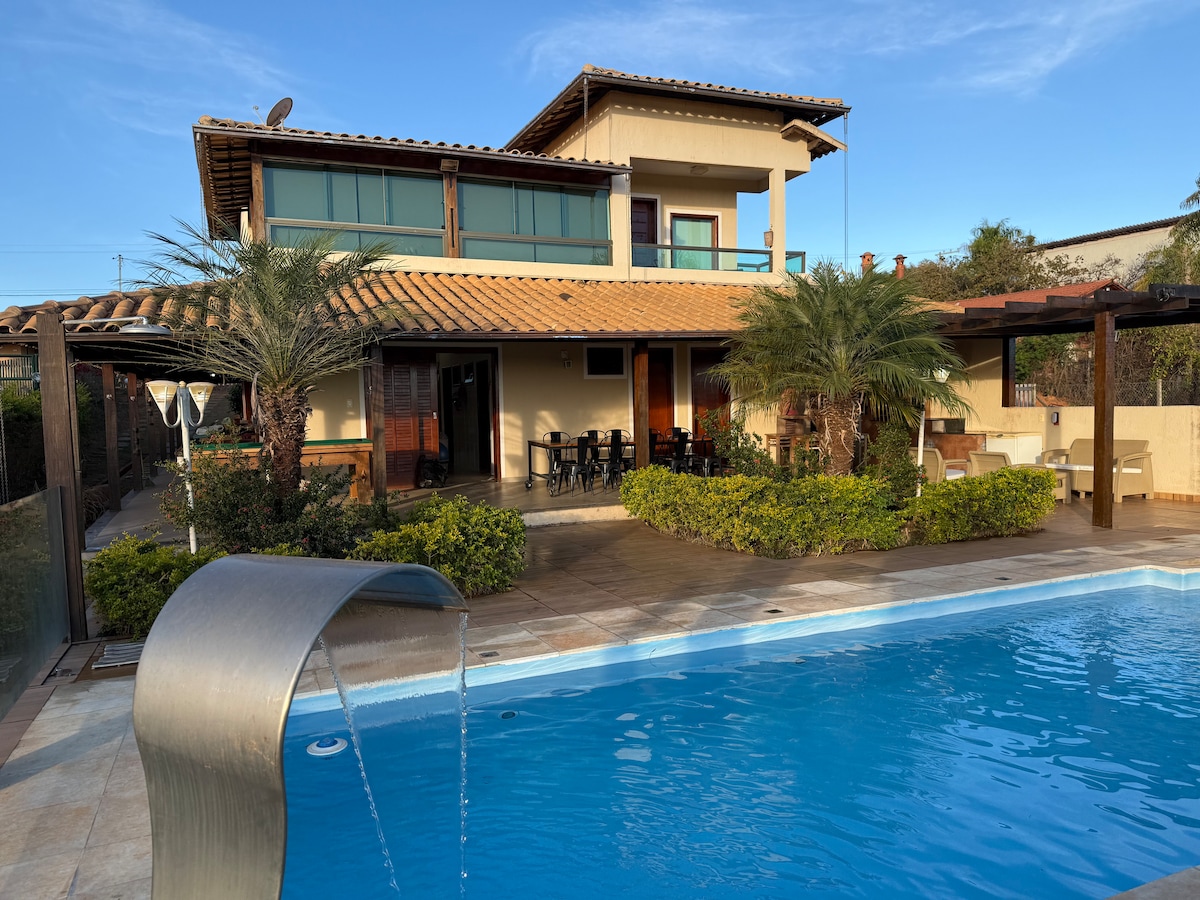 Casa em condomínio fechado. Piscina com cascata, iluminada e com hidro. Sala com sofá/cama, poltronas, TV85 polegadas, mesa de jantar(6 lugares) e lavabo. Cortinas elétricas c/ vista p/ piscina. 04 espreguiçadeiras de luxo. Sofá externo e chaise. Banheiro externo. Ducha externa. Utensílios de cozinha/eletrodomésticos. Churrasqueira. Rede. Cama elástica p/ crianças. Suíte 01: DUAS cama de casal Suíte 02: UMA cama de casal + uma de solteiro Ambas com ar condicionado. Vista perfeita.