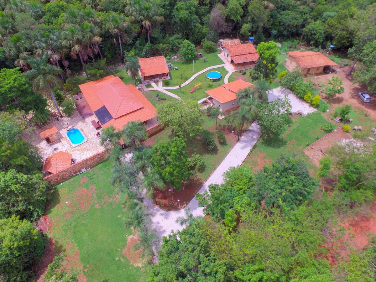 A Chácara Raio de Sol fica a 15 min da cidade de Pirenópolis (sendo 13 km de asfalto e 3km de terra), no caminho que leva a algumas cachoeiras, como: Araras, Paraíso, Dragões, Rosário etc. Alugamos todo o espaço para uma única turma, para que tenha mais intimidade e comodidade. Contamos com 3 chalés suítes (cada chalé com 2 camas queen) e 1 casa com quarto (1 cama de casal e 1 cama de solteiro), sala e banheiro. Temos mesa de sinuca, mesa de baralho e espaço para vôlei, espaço para fogueira
