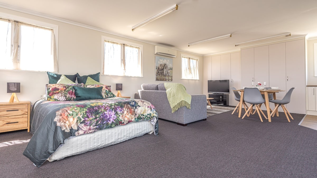 Our self contained apartment offers unique semi rural accommodation with amazing mountain views suited for tourists & travelers to enjoy all our region offers. Relax in the living area with comfortable lounging, dining table with full kitchen incl. dishwasher. Indulge yourself in a luxury queen size bed. A second bedroom offers a king single. A sofa bed is available if needed. A continental breakfast is provided. Cooked breakfast available weekends $15 per person. Laundry $10 wash & dry