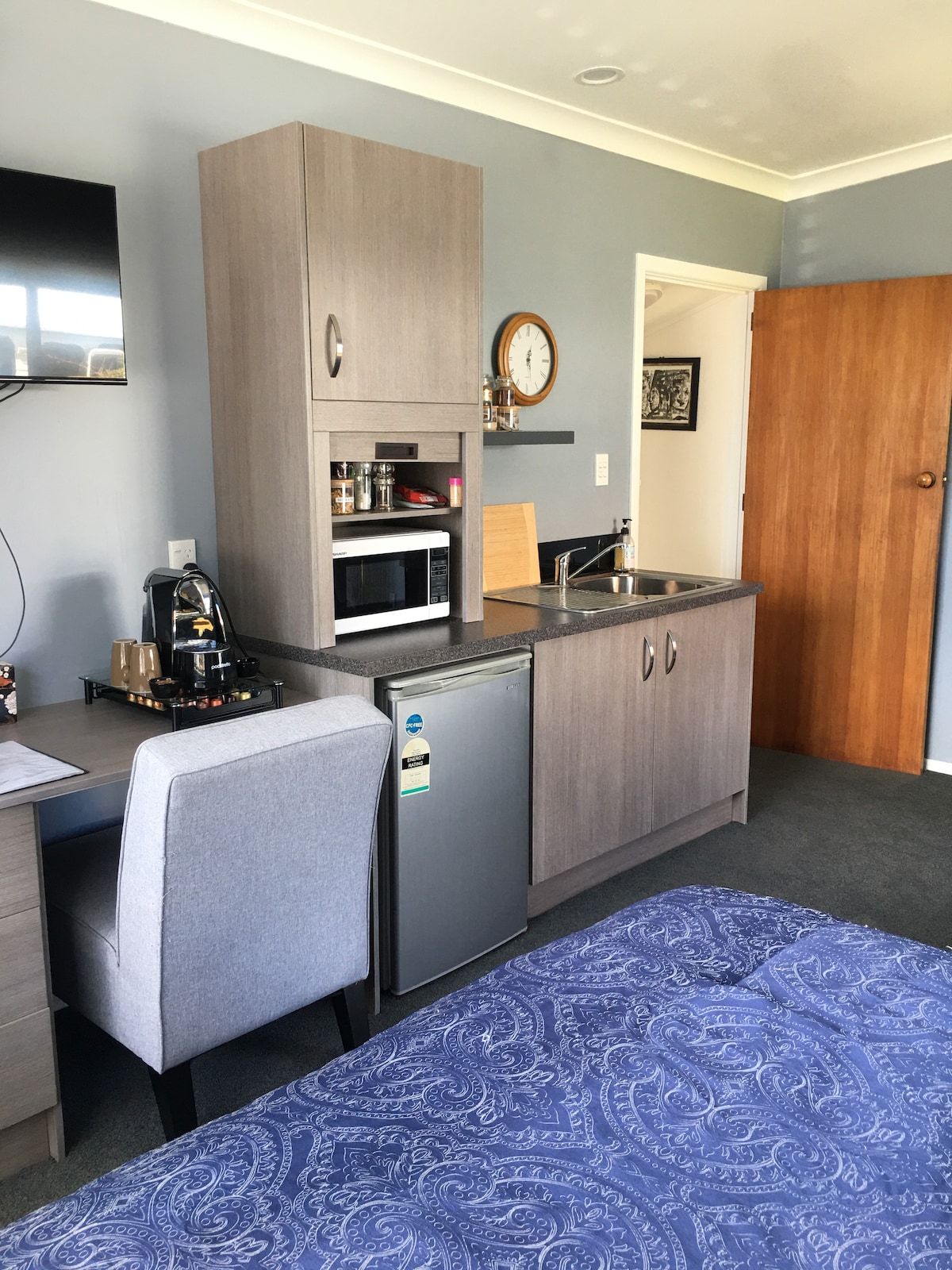 Kick back and relax in this calm, stylish space. The studio is separate, fully fenced, lovely and private. It includes a relaxing little Zen garden area. The TV has all of the subscriptions. The kitchenette has a microwave, toaster, Nespresso coffee machine, coffee pods, kettle & fridge. The stunning Oakura surf beach and Black Sand Pizzeria is just a 15 minute walk away, the cute little Oakura village, cafes and restaurants, a 12 minute walk away, and the Kaitake Ranges a 15 minute walk.