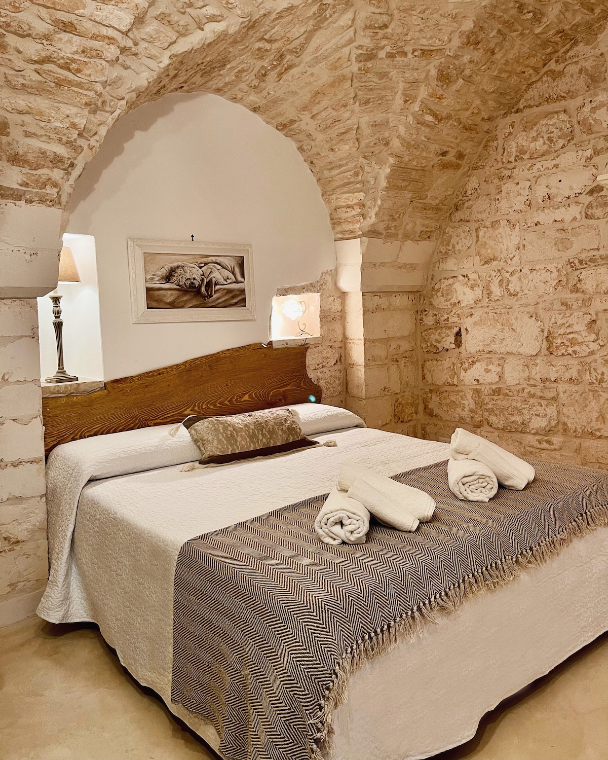 CIS: BR07401291000000188 CIN: IT074012B400033730 Vivi la magica sensazione di trovarti tra passato e presente: è una dimora storica! I pavimenti d'epoca e le pareti in pietra fanno da sfondo a un ambiente arredato con oggetti di design, vecchie ceramiche e mobili locali. L'ampio terrazzo privato, con solarium e doccia calda, saprà entusiasmarti: potrai rilassarti con un bicchiere di vino al tramonto, godere del sole su comodi lettini o preparare una cena in una magica atmosfera pugliese.