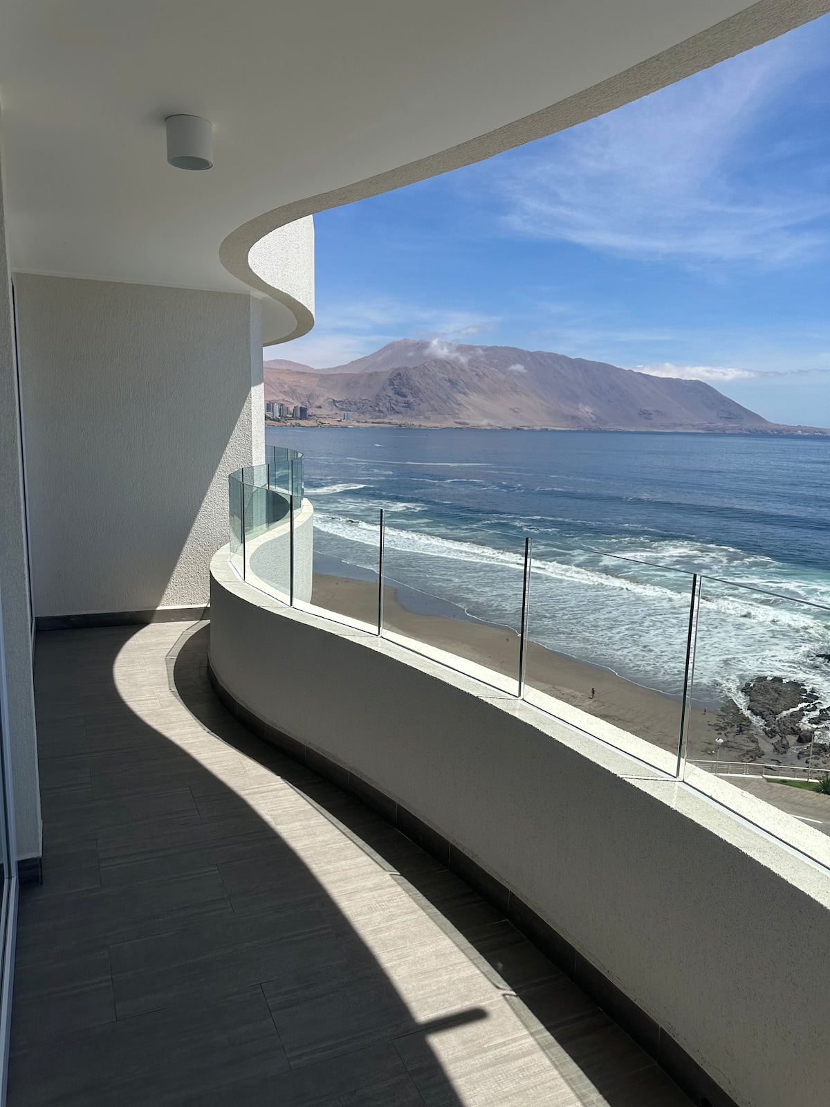 ⭐ Disfruta de una experiencia única y exclusiva en este amplio y lujoso departamento ubicado en el exclusivo condominio Mar Egeo. 🏠 Ubicado al frente de playa brava y a pasos de playa Cavancha, en una de las zonas mas exclusivas y turísticas de la ciudad de Iquique. Cercano a restaurantes, farmacias, caja de cambios, casinos y pubs. ☀️🏊♀️ Relájate y disfruta de sus maravillosas vistas a la gran piscina del condominio y a playa brava. Ademas de los exclusivos muebles de terraza.