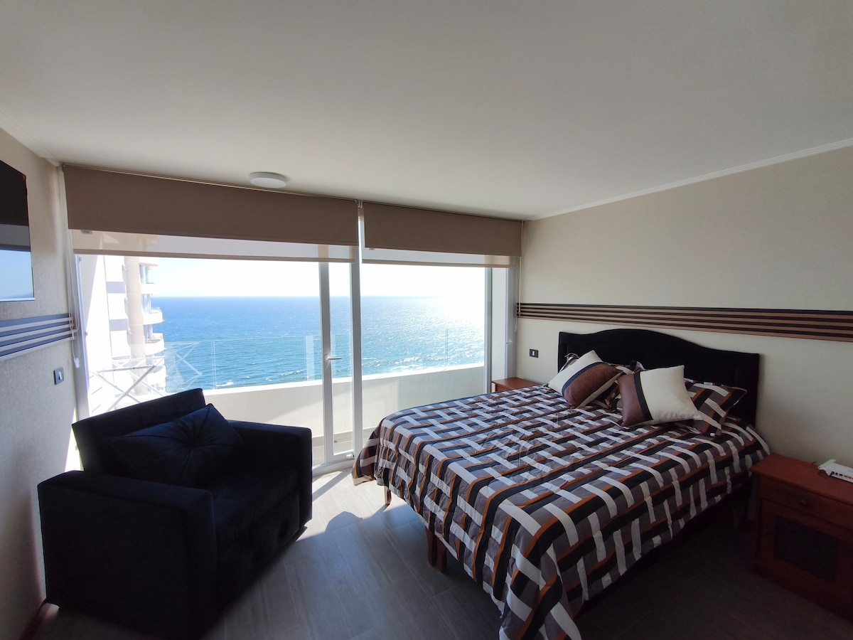 Departamento con la mejor vista de Iquique a la playa Cavancha desde el piso 12. Solo 15 metros de la playa. Amplio Dormitorio con “Cama King”, Cocina Americana. Full Equipado! Estacionamiento Subterráneo privado con control remoto, el edificio es muy seguro con circuito cerrado de cámaras. Cercano al Supermercado “Jumbo”, “Casino de Juegos Dreams” y “Península Cavancha” donde se ubican los mejores restaurantes y Bares de la ciudad.