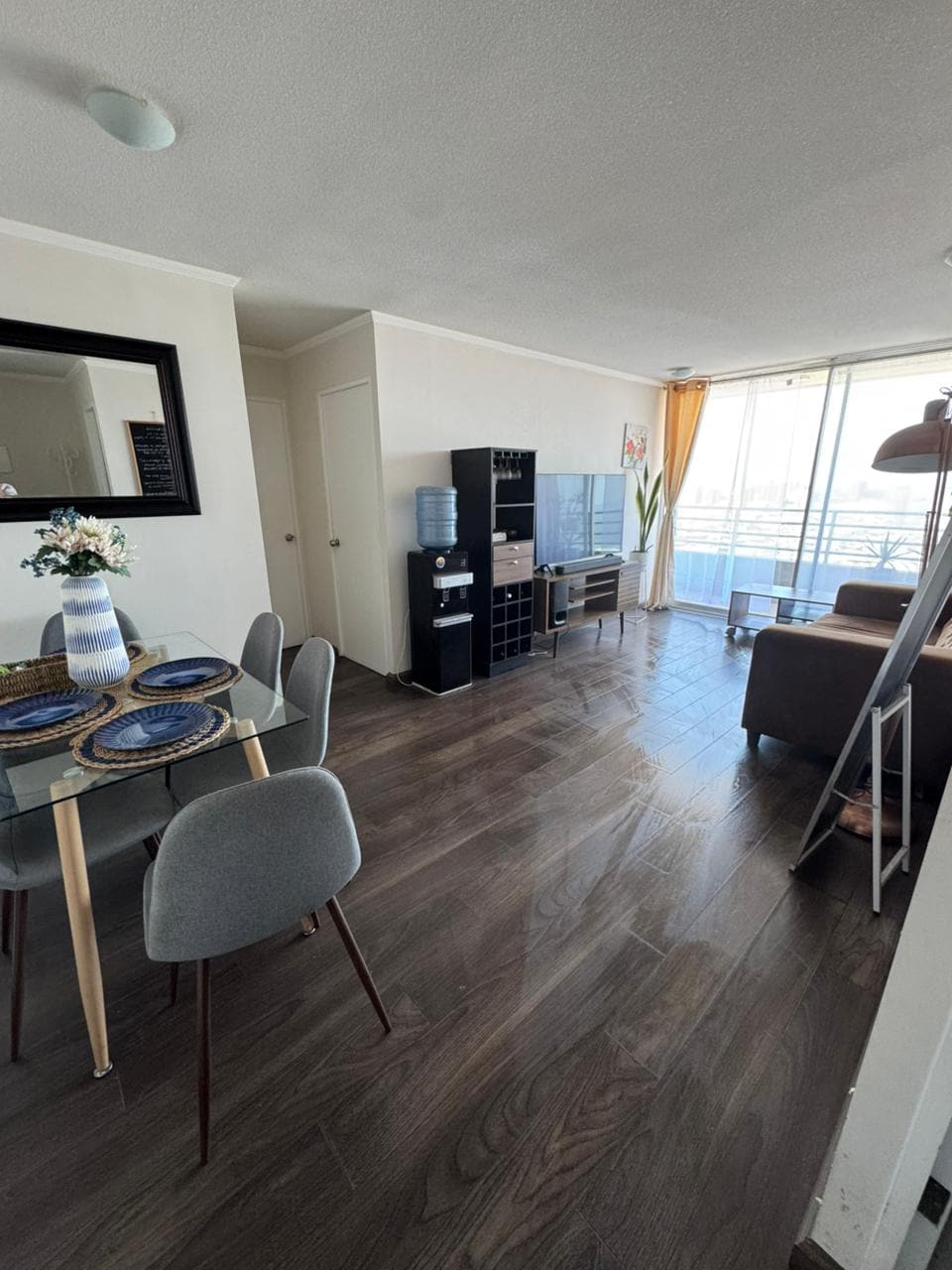 Disfruta de una estadía cómoda en este acogedor departamento en Iquique, ideal para familias, parejas o viajes de trabajo. El alojamiento cuenta con 2 dormitorios, 1 baño, cocina equipada, living con Smart TV y terraza . Acceso a la Plaza Prat, Paseo Baquedano, Zofri y el Museo Corbeta Esmeralda. La ubicación te permitirá disfrutar tanto del borde costero como de la zona comercial y cultural de la ciudad. -Wifi gratuito -Cocina equipada -Conserjería 24 horas -Estacionamiento privado