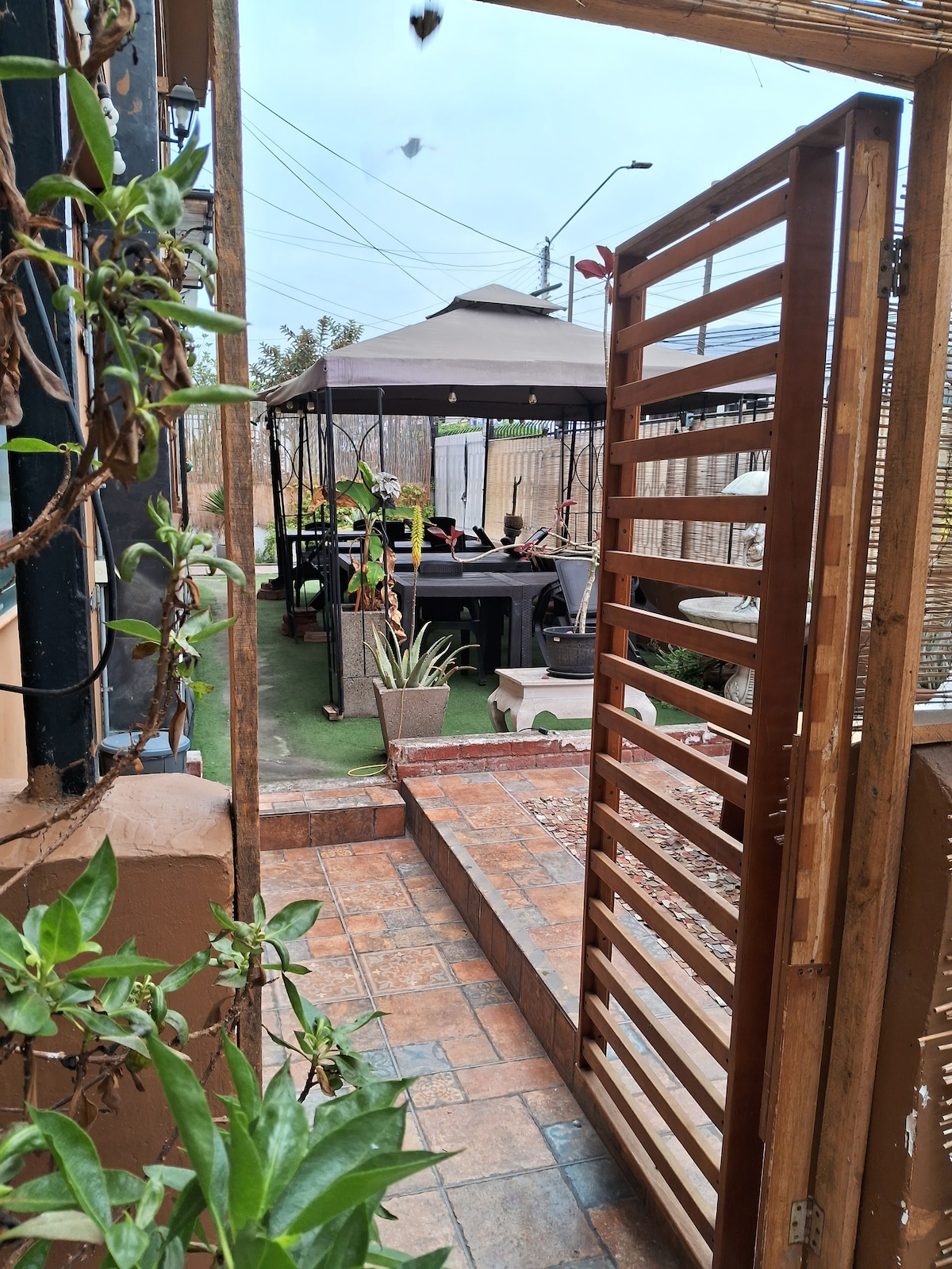 Depto huéspedes, es una vivienda anexa, familiar, tiene entrada independiente, 1 hab matrimonial, 1 hab d niños, (2 camas 1 plaza ) un baño, 1 cocina pequeña, con todos implementos, condominio con juegos d niños, áreas verdes y cerrado c/portones eléctrico. Tiene cerca: supermercado 150 mt, 3 farmacias, una cafetería, cajeros automáticos, Restorant Chino, un pub, peluquería, centro médico, Playa Brava y Cavancha por la costa. Puede acceder a todo tipo de transporte publico las 24 hr